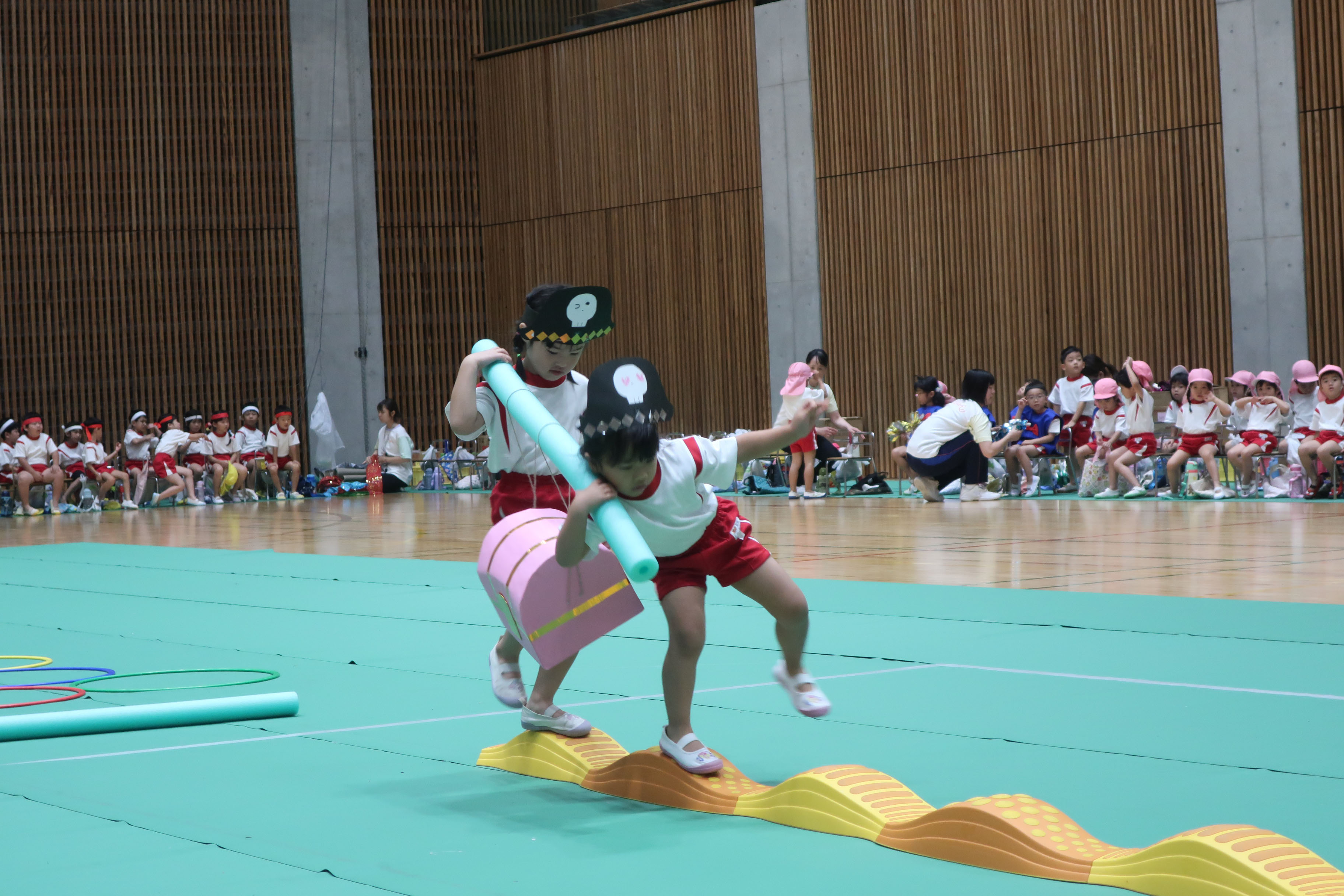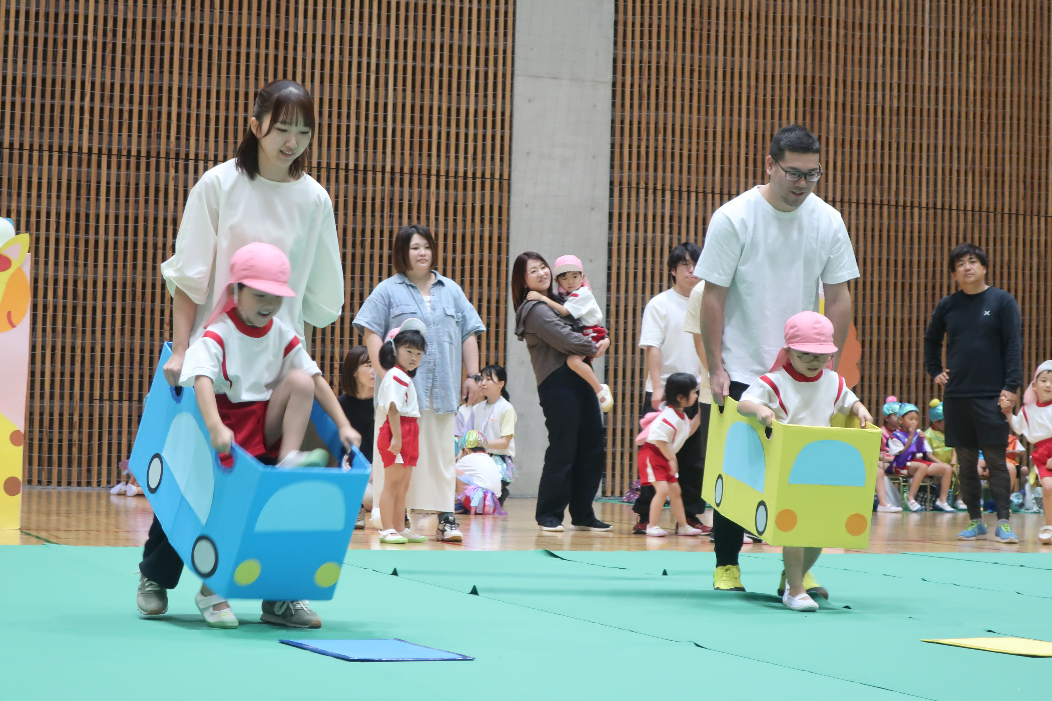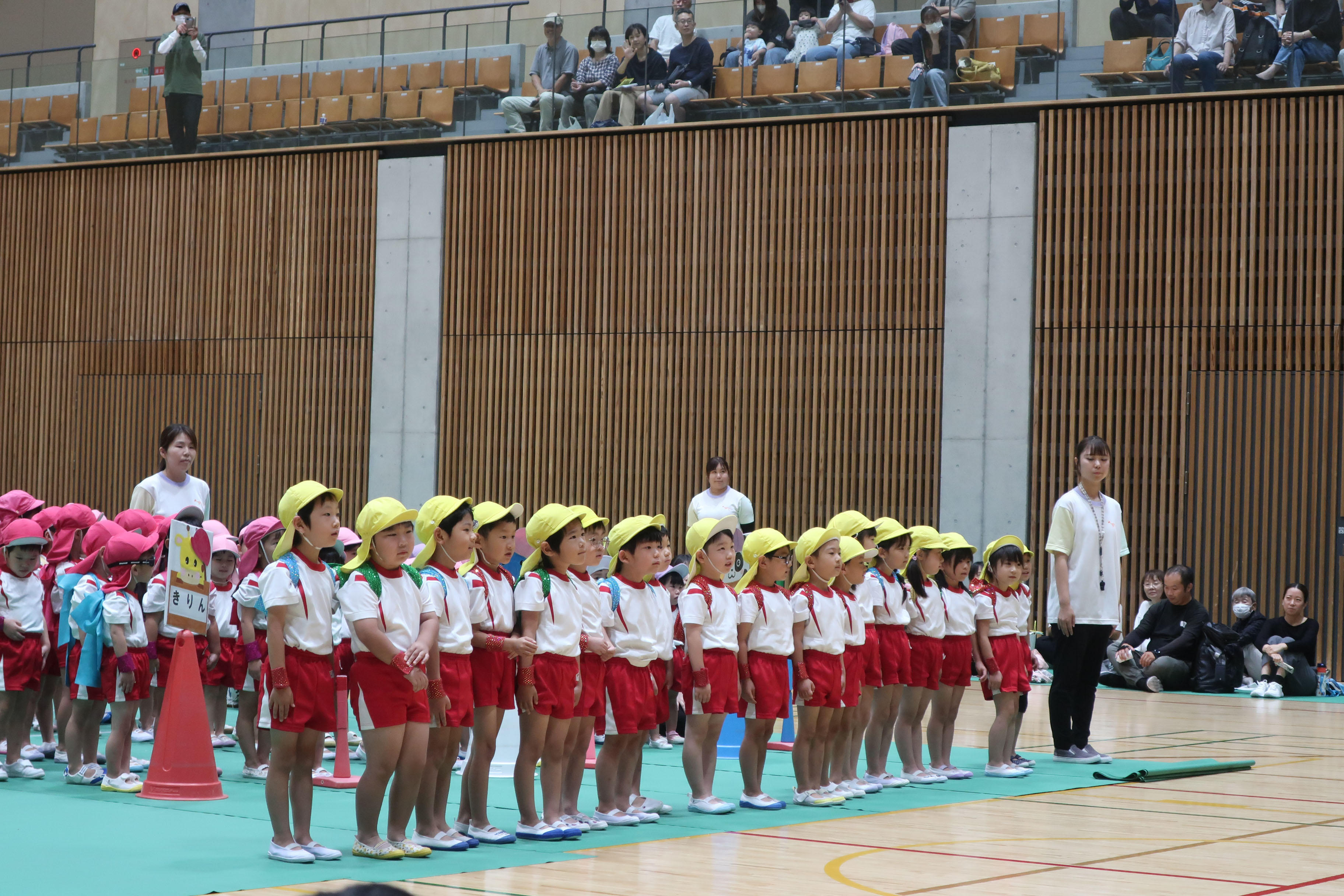 待ちに待った第57回運動会! 運動会に向けてどのクラスも取り組みを頑張った数か月。 当日の朝はみんな元気に集合してくれて 大好きなお家の方に向かってかけっこしたぱんだ組さん。 大きなバルーンを持って力いっぱい演技したきりん組さん。 出番が多くたくさんの取り組みをしたらいおん組さん。 早朝から現地集合にご協力いただき、励ましの拍手や応援、 こどもたちの成長をたくさん見れ、 さあ、次はりす組、ひよこ組のミニ運動会ですねー! |