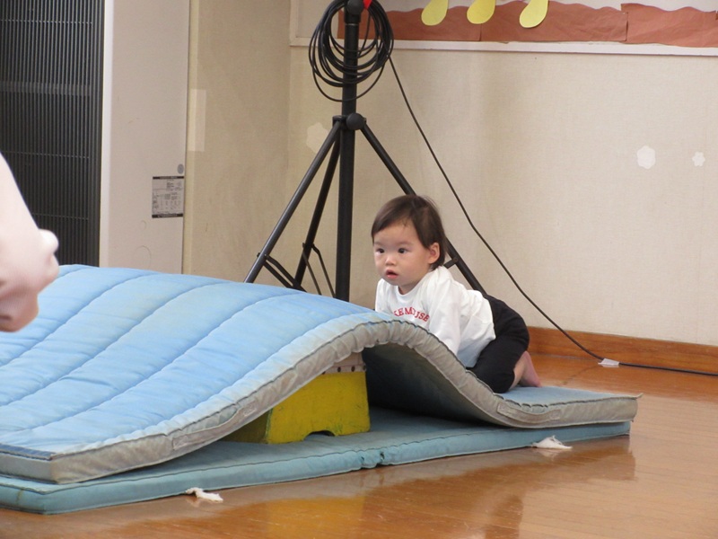 今日は、りす組・ひよこ組のミニ運動会&ピクニック参観でした! まずは「やんちゃ怪獣どか~ん」を踊って準備体操をしました!リズムに合わせて身体を動かしたり、ジャンプしたりと楽しそうにしていましたね♪ 「よちよちかけっこ」では、手を挙げて返事をしたり大きな声で返事をすることができていましたね!保護者の方に向かって一生懸命ハイハイしたり走ったりと頑張っている姿が見られました。 親子競技「へい、おまち!」では、お寿司をテーマに山を乗り越え、船に乗って魚を釣ってお寿司屋さんに持っていてお寿司に変身!いつもと違う雰囲気に緊張している子もいましたがみんなゴールすることができ、最後はかわいく決めポーズ♡「おすしすし」のふれあいダンスも楽しんでいましたね! 山を乗り越える時は、ひよこ組さんはとび箱一段、りす組さんは2段に挑戦しました!腕や足の力を使って乗り越えられましてね。お魚もどの色にするか自分で選んで自分で持って行ったり、保護者の方と一緒に持って行って一緒に決めポーズをして頑張りました。 ピクニックタイムでも家族で弁当を広げお話をしながら楽しく食べていましたね♡ 衣装の準備やお弁当作りなどご協力ありがとうございました。 |
