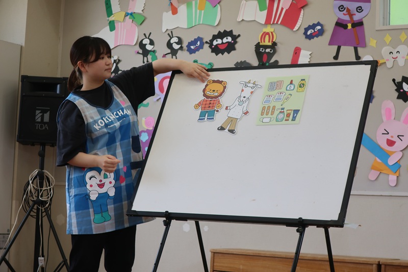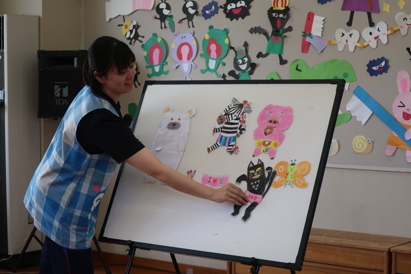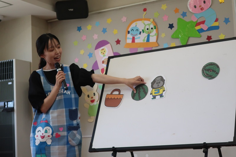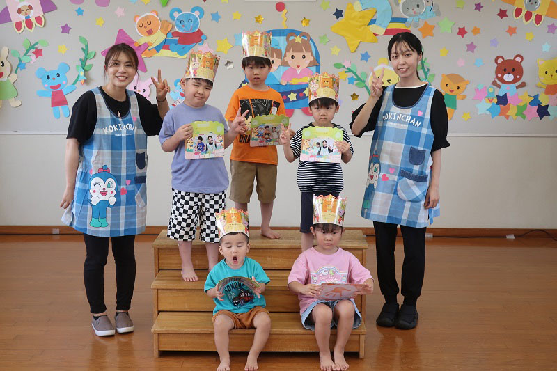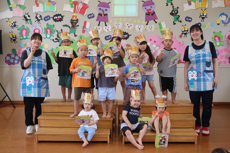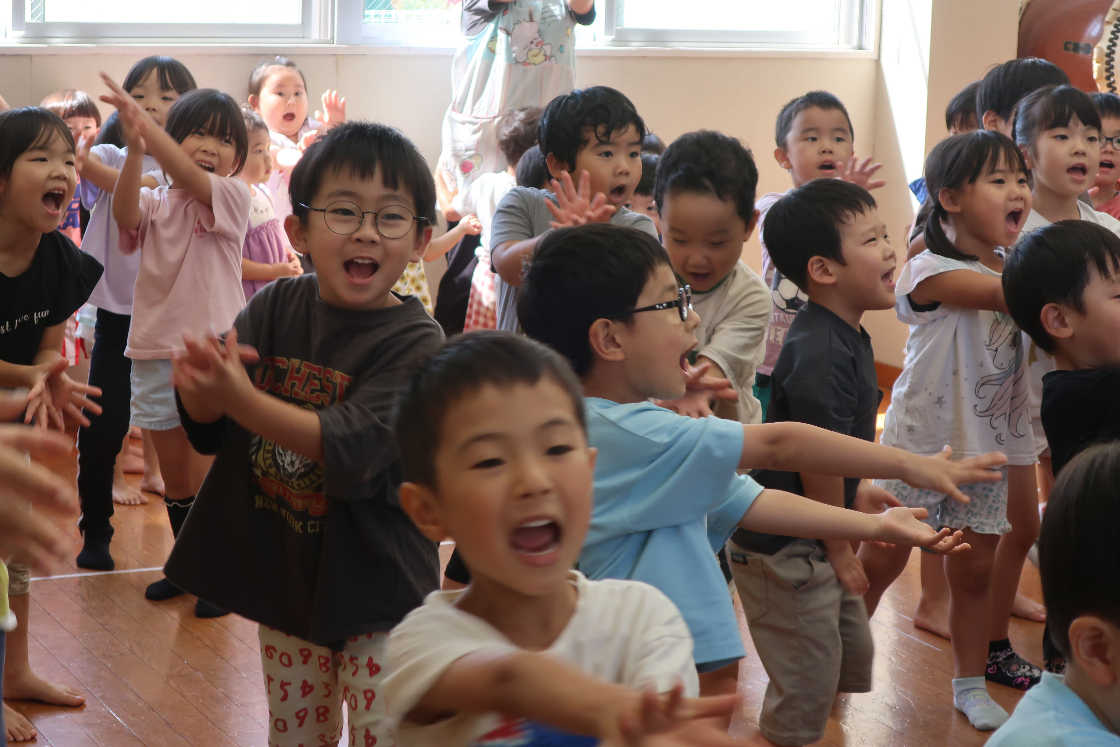 6月生まれのお友だちのお誕生日会がありました! りす組・ぱんだ組のお友だちには・・・ 名前・年齢・好きな食べ物 ぞう組・きりん組・らいおん組のお友だちには・・・ 名前・年齢・大きくなったらなりたいものを聞きました! 大きな声でかっこよく答えてくれましたよ☆ 先生からの出し物では「しろくまくんのぱんつ」と「らいおんくんのおかいもの」の2つのパネルシアターを見ました! 「しろくまくんのぱんつ」では誰のパンツかみんなで当てました!パンツの柄を見て誰のだろ~と考えていましたよ! 「らいおんくんのおかいもの」では音楽にのせてらいおんくんがお買い物をしていくところを楽しみました!がおー!と言ってくれる子もいましたよ(^^)/ 最後は「エビカニクス」を踊りました! 梅雨で思いっきりお外で遊べないからこそ、お部屋の中で体操をしながら体を動かして楽しみました♪ 6月生まれのお友だち、おめでとう! |