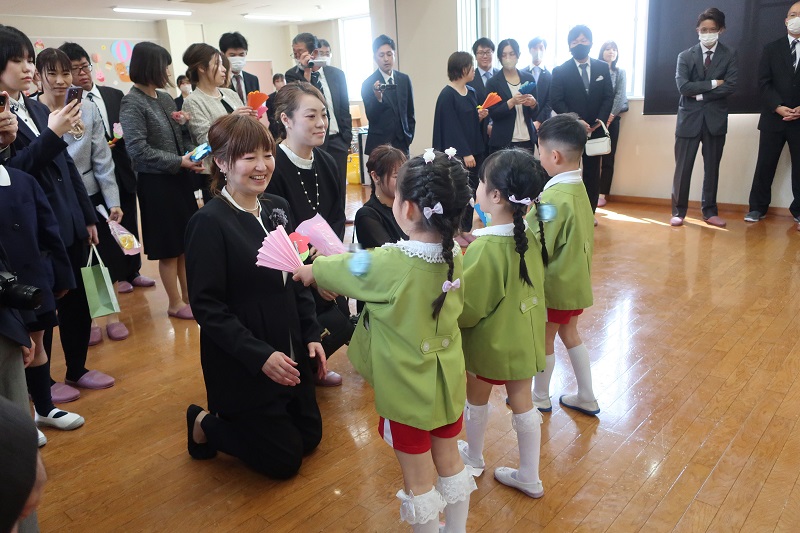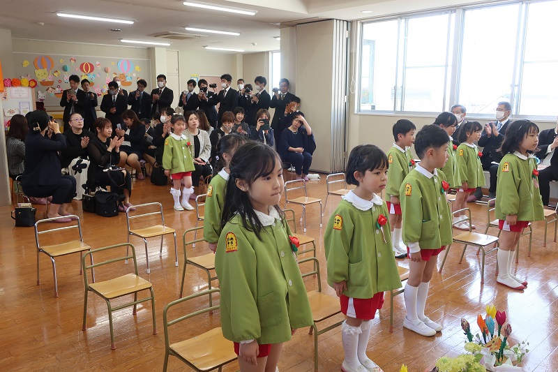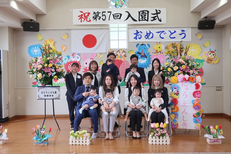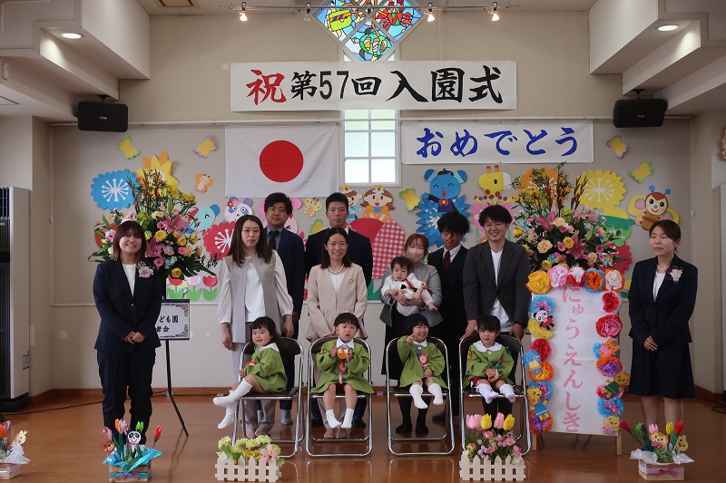 暖かい春の日差しを感じながら、本日、第57回入園式を行いました☆ 新入園児のみなさん、ご入園おめでとうござます! 4月1日から園生活が始まり、初めての環境に戸惑いながらも頑張って通ってくれたことと思います。 今日は保護者の方と一緒だったので安心して式に参加でき、たくさんの笑顔が見られたので職員も安心しました。先生たちの出し物も楽しそうに見てくれましたね☆ そして各クラスごとに記念写真♬ 抱っこしてもらったり、一人で椅子に座って撮ったりと素敵な集合写真が撮れました。 少しずつでいいので、職員の顔を覚えて『こども園って楽しいな~』と思ってもらえたらなと思っています♪ 新たな1年も職員一同、安心安全な保育を心掛けて努めてまいります。 どうぞ今後ともよろしくお願い致します!! |