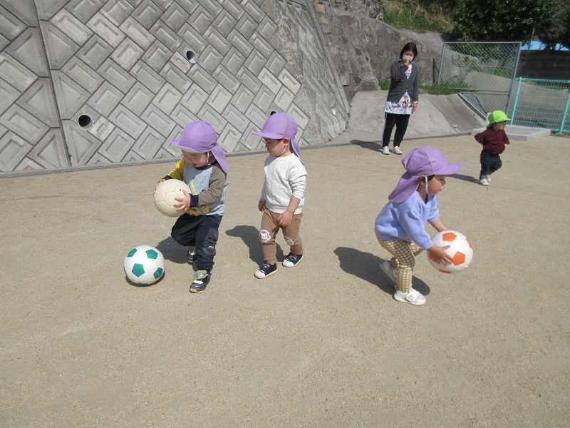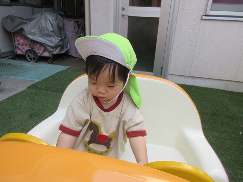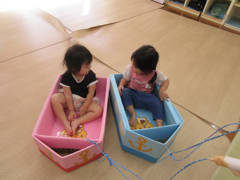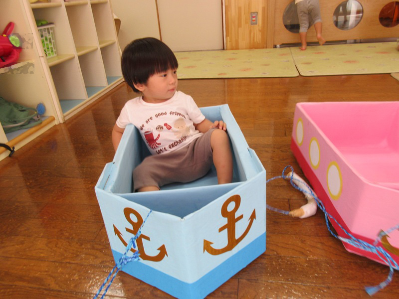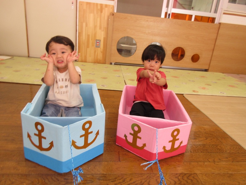 今日は、運動会の練習で船に乗りました~! 船を見つけた瞬間嬉しそうな表情で待っていました。初めて乗った時は、警戒心が強かったですがだんだんと慣れてきて笑顔が見られるようになったり、社長気分の友だちもいました(笑) しゅっぱ~つしんこ~!と声をかけるとゴー!と手を挙げていました!運動会当日どんな表情で乗っているのか楽しみですね☆かけっこもおかあさん、おとうさんの方に向かってニコニコ笑顔で走って行く姿、子供たちの成長した姿を見られると嬉しいですね♡ 運動会の練習の後はみんな大好き中庭で遊びました♪ジャングルジムを何度も挑戦したり、モルカーに乗ってドライブをしたり、飛んでいるシャボン玉を追いかけたりなどたくさん楽しんでいました! |