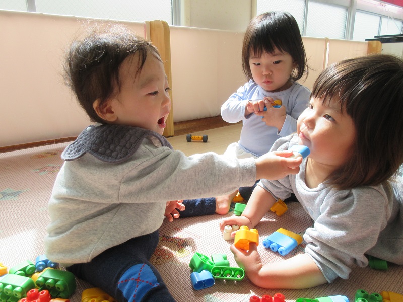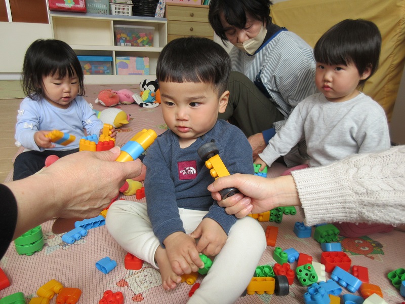 ご入園・ご進級おめでとうございます! 初めての場所でドキドキ・ワクワクなかわいいりす組さん♡ 初日はみんな戸惑っていたり、涙が出ていたりするお友だちもいましたが2日目になると少し慣れたお友だちもいて部屋の中を探検する様子も見られました♪ 1日目、2日目はお部屋の中でブロックやお人形さん遊び、音楽を聴いたりとゆっくり過ごしました。 これから戸外遊びやシール貼り、絵の具を使った製作等沢山していきますのでお楽しみに~♡ |
