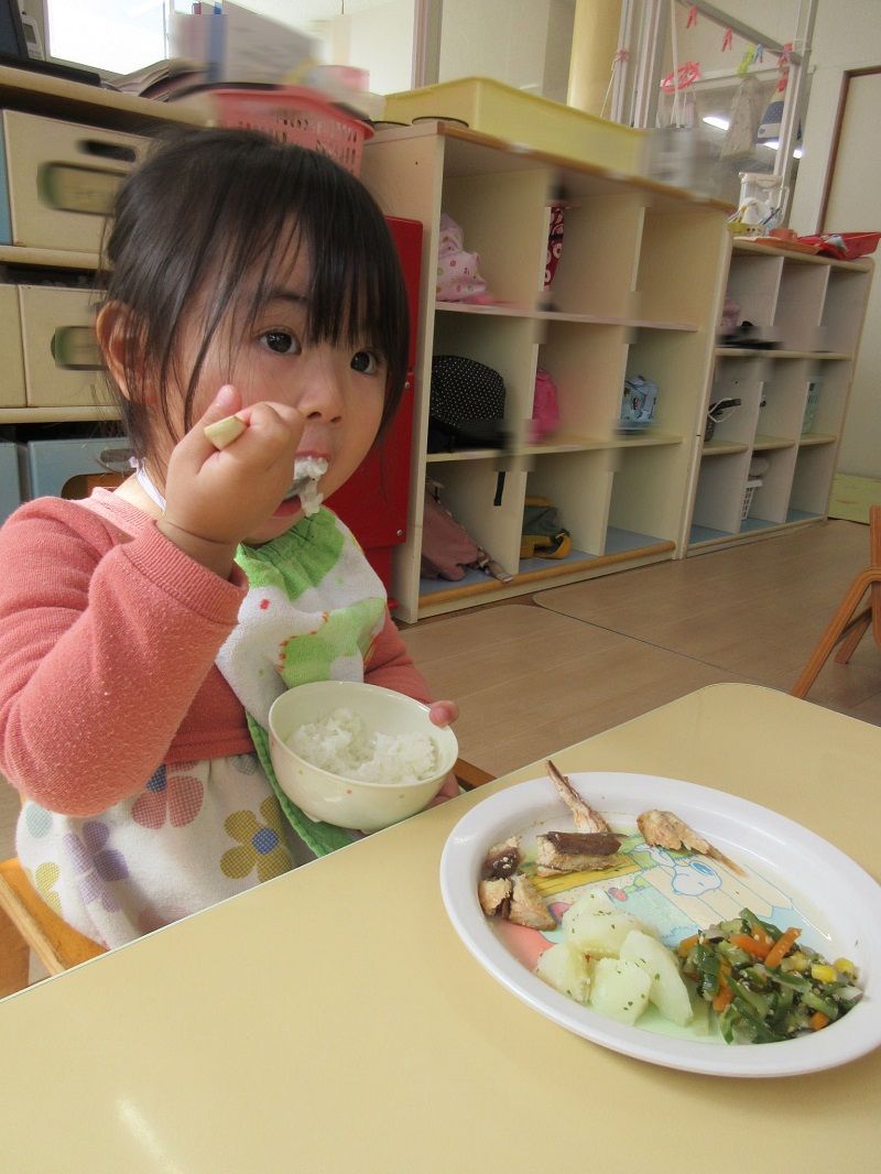 今月のりす組さんの様子を紹介します♪ 今月はミニ運動会&ピクニック参観もありました!練習も本番もとてもよくがんばりました☆家族の方と一緒にお弁当も食べて楽しんでいましたね! 11月壁面製作もしましたよ(*^^)初めてタンポを使って模様を付けて見ました!オレンジ色の絵の具をタンポに付けてリズミカルにポンポンして楽しく製作を行い、とても上手にさつま芋が完成しましたよ(^▽^)さつま芋の他にも手形で炎に見立てたり、画用紙になぐり書きをして葉っぱを作ったりと盛りだくさんでした!11月壁面『やきいも』がもう少しで完成するので来月お楽しみに~!! 戸外遊びや室内遊びもたくさんしましたよ。たくさんの事に興味を示し、触ってみたり行ってみたりと好奇心旺盛のりす組さんです♪ 最後に紹介するのは、おやつ時間・給食時間です!食べる事も大好きなりす組さん、おやつや給食を見るととても嬉しそうにしていますよ!自分でスプーンを持ち上手に食べられるようになってきています(*^^)v |