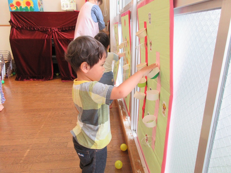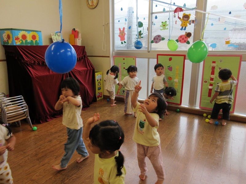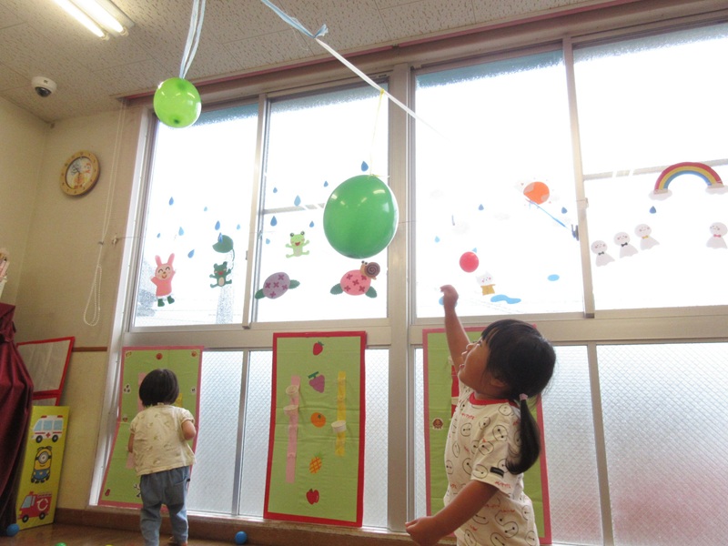6月に入り、梅雨に入ったのかと感じるくらい雨の日が続きますね。 お外遊びがなかなかできませんが、お部屋の中でも元気いっぱいな子どもたちです(^^)/ ボール遊びが大好きなぱんだ組さん!今日はお部屋の中でボールを使って遊びました! 紙コップの上側だけを切り取り、それを並べてボール落としを作ったので子どもたちにお披露目! 遊び方を伝えると自分でボールを入れ、落ちていく様子を楽しんでいました! 他にも風船をひもで吊るして的当てをしました! いろんな大きさの風船があり、自分の好きな風船にボールを投げて当てました! ジャンプをして風船を触っている子もいましたよ☆ 梅雨に入ると雨の日がずっと続きますが、お部屋で楽しめる遊びをしていこうと思います♪ |
