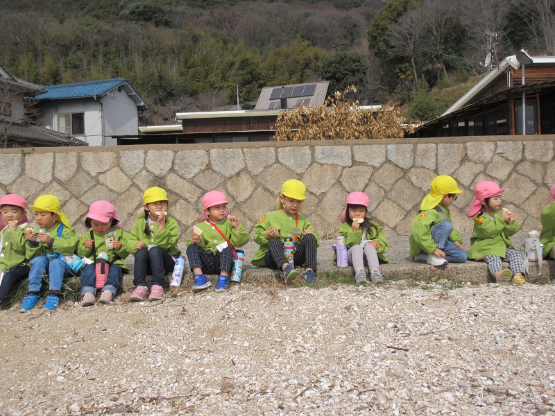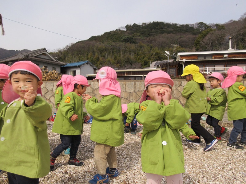 今日は、待ちに待ったおもいでさんぽの日!! きりん組さんと一緒に高浜海岸までおさんぽに行きました(*^-^*) 水筒を持って、いざ出発! お兄ちゃん、お姉ちゃんとしっかり手をつないで、歩いていきます! 道中にはお花やいろんな建物等魅力的なものがいっぱい(*^-^*) こけないように前を向いて、足をしっかりとあげて、「お花が咲いてるね~」「見て~川があるよ!」等お話をしながら、ニコニコで歩くぱんだ組さん♪ 海岸についてから、おやつタイム! 沢山歩いた後のおやつはとっても美味しくって、ペロリと食べてしまいました(*´▽`*) 持ってきた水筒でしっかり水分補給もして・・ その後は、待ちに待った貝殻ひろい! 「かわいい貝殻みーつけた!」「これもって帰るんだ~」とウキウキで探すぱんだ組さん♬ 袋がいっぱいになるまで、貝殻を集めました(❁´◡`❁) 最後まで、しっかりと歩いて・・ 無事に園まで帰って来ることが出来ました!みんなよく頑張ったね! 最後にきりん組のお兄ちゃん、お姉ちゃんに大きな声で「ありがとうございました」を伝えました! ぱんだ組最後に、とっても楽しいステキな思い出が出来たね(*´▽`*) |