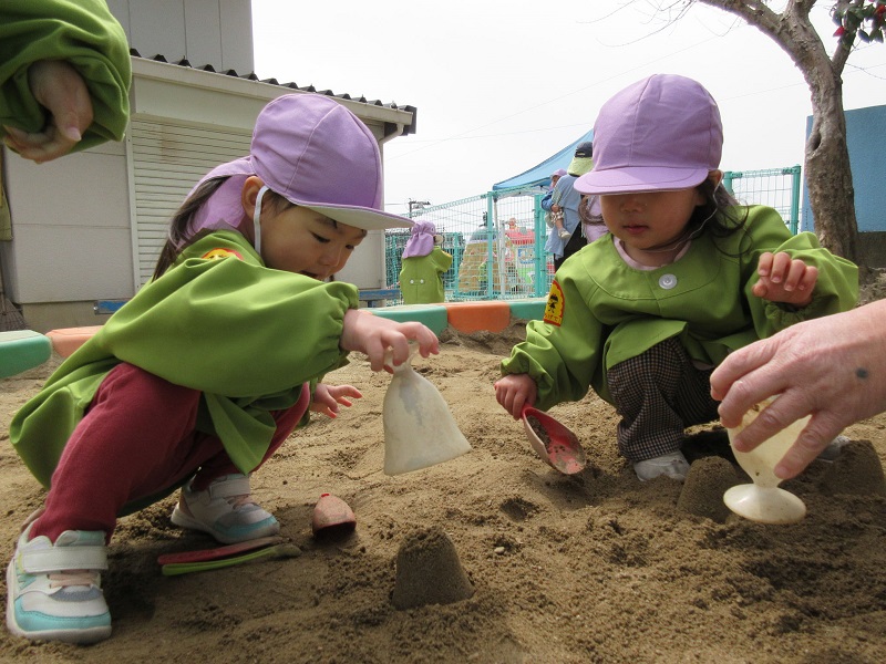 今日からぱんだ組さんが始まりましたね!初めてのお部屋にドキドキワクワクの子どもたち(*^-^*)少し戸惑っていましたが、慣れるといつも通りの可愛い笑顔でした♡ おやつを食べたらお外にしゅっぱーつ!坂道を通って砂場まで行きました。途中でヘビさんいるかな~と石壁の中をのぞく姿が見られましたよ!砂場に着いたら先生のお話をよ~く聞いて遊びました。キッチンにお友だちと並んで料理を作ったり、先生と一緒にお山を作って楽しみました♪ これから1年間よろしくお願いします! |