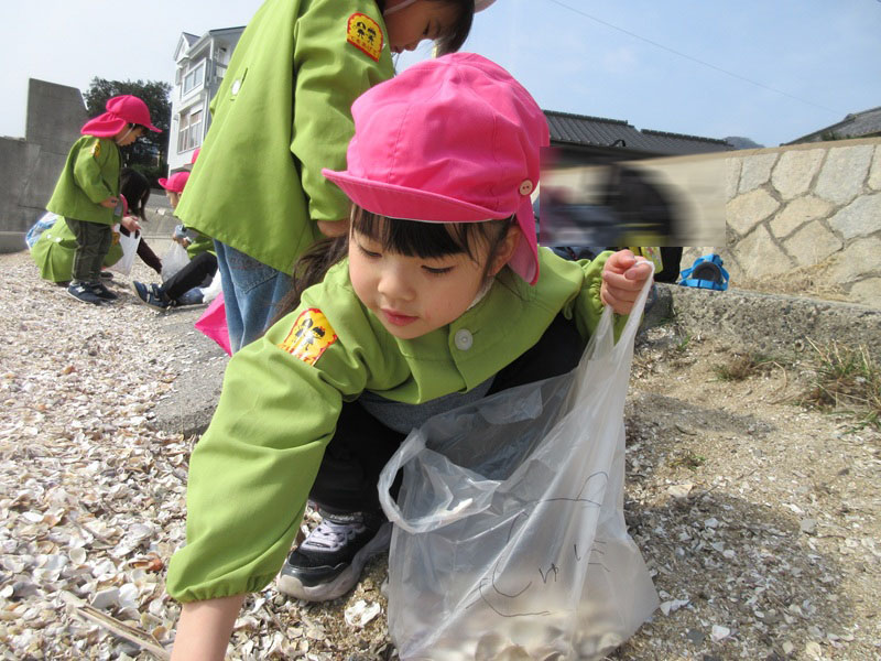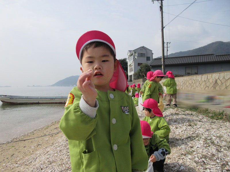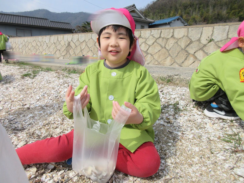 今日は、天気もよくお散歩日和でした! 「今日は行けるね!」「よっしゃー!!」と行けることが嬉しくてルンルンなこどもたち。「ビニール袋も持ってきたよ」と持ち物もバッチリでした( *´`) 道中は、木に花がさいているのをみつけると「みて!きれいだよ」「あそこにもある~」とみたり、地域の方がいると挨拶をしたりしていました。 横断歩道があると「この前交通安全教室でした」「赤は動いちゃだめ、緑は進んでいいよ」と確認していました。左右を確認して手を挙げて渡っていました☆ 目的地の高浜海岸につくと・・・ 海の広さの驚いていました。沢山歩いたのでお茶を飲んでおやつを食べてひと休憩♡美味しくてぺろりと完食したり、大事に少しずつ味わって食べていたりしました。 貝がら集めを始めると、友だちと大さきや形、拾った量を比べていました。お気にいりをみつけると「みて!!いいでしょ!!」と大喜びでした( *´艸`) |