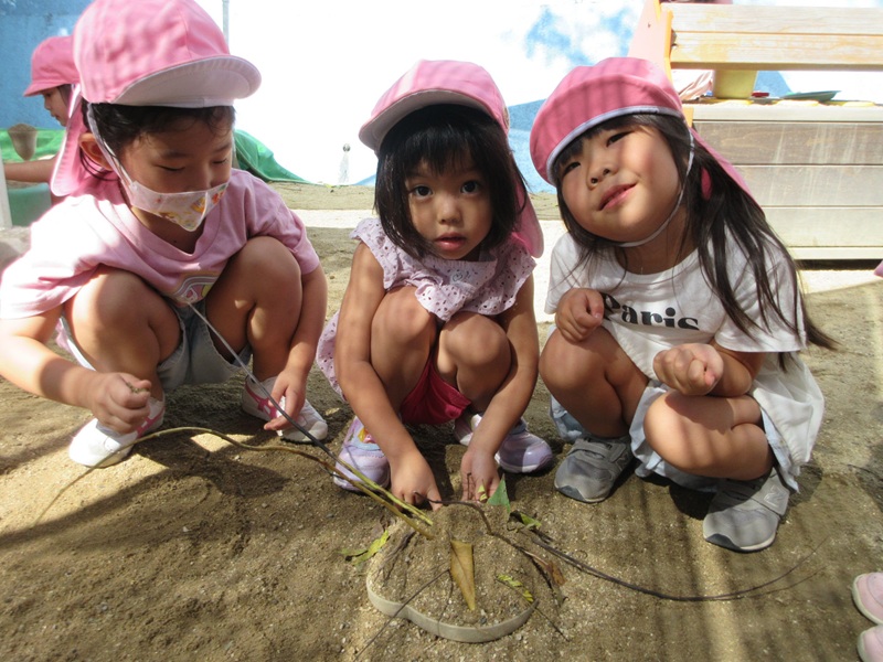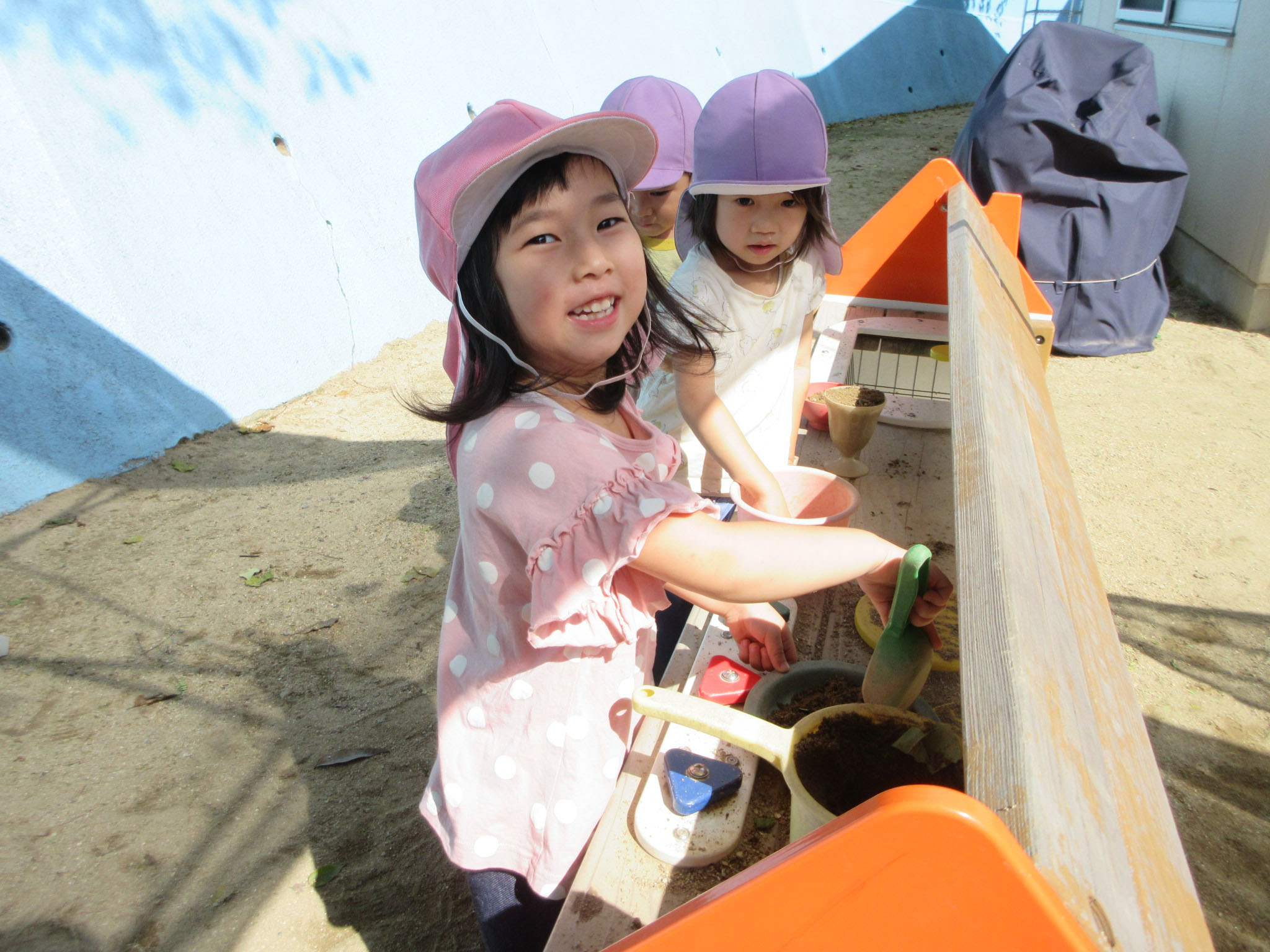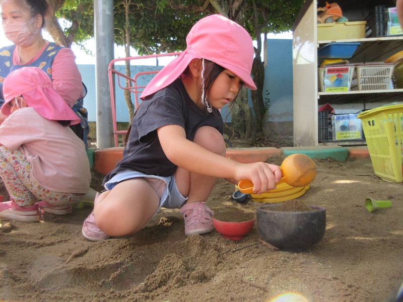 気温も過ごしやすくなり、お外あそび日和だったので、 今日は砂場遊びをしました(*^^*) 運動会の練習や、気温の関係でなかなか外で 遊べない日々が続きましたが、 季節も秋になって思う存分体が動かせることがとっても嬉しい様子! 型抜きをしたり、お友だちとごっこ遊びをしたり、 遊びの中で会話を楽しんだりして過ごしました(^^♪ なかなかお外遊びが出来ていなかった分、 「お外行こう!」が魔法の言葉になっているぞう組さんです( *´艸`) 夏が終わり、今度は秋、冬がやってきますね! 季節を感じながら過ごしていきたいと思っています(*^。^*) |