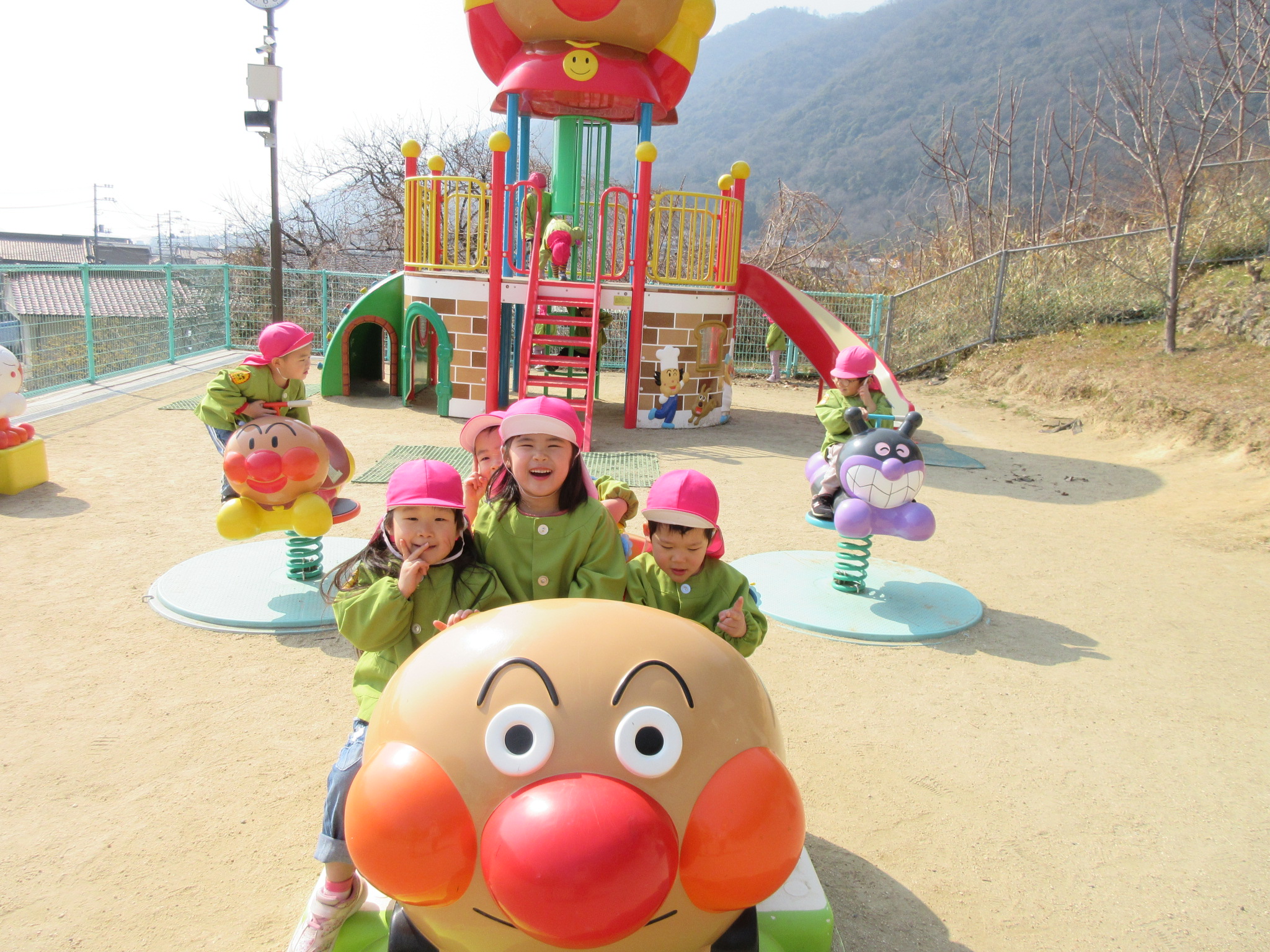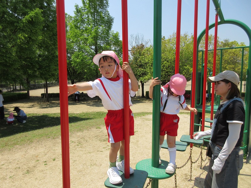 今日は子どもたちが楽しみにしていた親子遠足が ありました!! お天気にも恵まれ絶好の遠足日和!! 大きなバスに保護者の方と一緒に乗って 笠岡の古代の丘まで行ってきました。 バスの道中では窓から見える景色を見たり、普段あまり 乗らない大きなバスに大興奮のぞう組さん。 途中、「お弁当箱」の手遊びをしたり、みんなでシルエット クイズを楽しみましたよ。 古代の丘に着くと大きな遊具が見え、さらに子どもたちは 大興奮!! 集合写真を撮った後、自己紹介をし親子でフラフープリレーを 楽しみましたよ。 親子でのリクリエーションを楽しんだ後は、お待ちかねの 大型遊具へ。こども園の滑り台よりも大きな滑り台や ロープでできた遊具を登ったりと、大型遊具を時間いっぱい 楽しんでいましたよ。 遊具で遊んだ後はお弁当タイム。シートを敷いて親子で お弁当を食べましたよ。とっても美味しそうなみんなでしたね。 お天気にも恵まれ暑すぎるくらいでしたが、とっても 楽しい親子遠足でしたね。 保護者の皆様、お忙しい中親子遠足に参加くださり ありがとうございました!! |