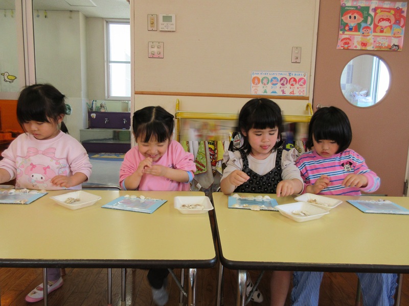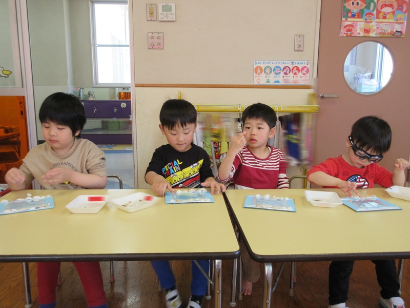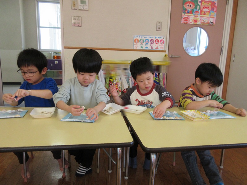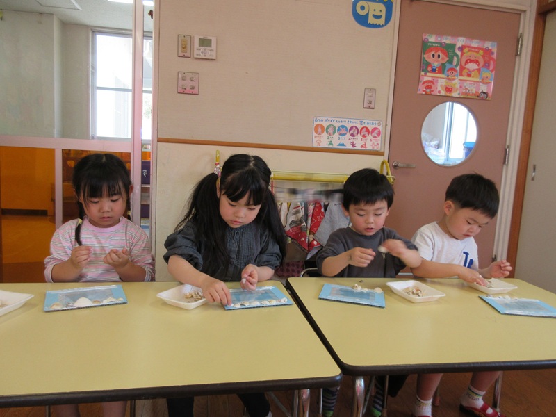 ぞう組で過ごすのも残り数日となりましたね… 「あと〇日行ったきりん組になるの?」「もう少しでぞう組さん終わりだね」とだんだん実感がわいているようです。 今年度最後のホームぺージは… 昨日みんなが楽しみにしていた貝殻を使った製作の様子をご紹介します! 高浜海岸で拾った貝殻が厳選して保管していたのを使いました。 「この前拾ったのでしょー」「うわ~!かわいい貝殻」と嬉しそうなこどもたち。大きさをわけてみたり、貝殻をゆったりと貼ったりしていました。 完成すると「みて!できたよ」と満足気な表情でした。 写真立てになりますので、「なんの写真に入れようかな」「みんなで撮ったのにしよう」とどんな写真を入れるかワクワクしていました。 ぜひお家で写真を入れて飾ってくださいね。 保護者のみなさま、1年間本当にありがとうございました。 こどもたちがすくすくと成長していく姿を一緒に見守っていくできて嬉しく思います。 きりん組では、太鼓、英語のレッスンがスタートします!楽しいことが盛りだくさんになります!!子どもたちのさらなる成長が楽しみですね(^^♪ |