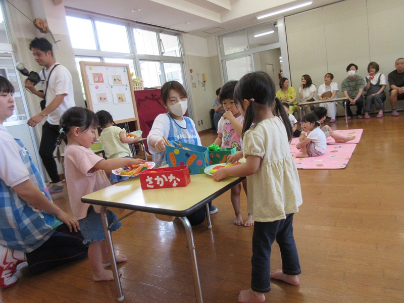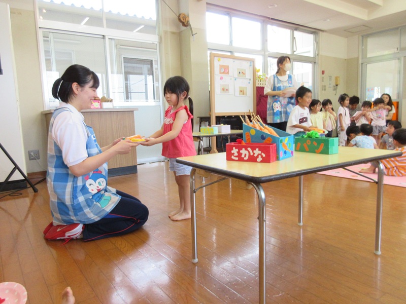 今日は、参観日でした(*^^*) いつもとは違うお部屋で、 お母さんやお父さんに見守られながら始まった参観日! まずは朝の会! 「今日は何日~?」の質問にも答えられるようになってきました! 出席確認では、大きな声で「はい!」とお返事も出来ました! 季節の歌を歌ったら、いよいよ参観日スタートです! 参観日では、『買い物競争』をしました! ルールは、カードに描かれた食べ物を買ってくる! いつもとは机の位置が違ったり、食べ物もバラバラに置いてあった り、いつもより難しくしてみました! でも、何を買うのかしっかりカードを見て、確認している様子が見ら れました(#^.^#) 買い物が終わっても、買い物が終わっていない子に「頑張れ~!」と 応援する声が聞かれました( *´艸`) お母さんやお父さんがいて初めは緊張で、ドキドキだったぞう組さん でしたが、最後まで楽しく頑張りました(^^♪ 保護者のみなさま、お忙しい中保育参観に参加いただき ありがとうございました。 |