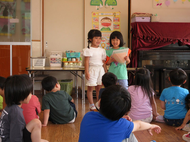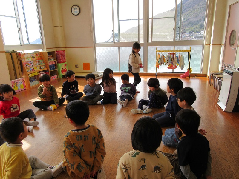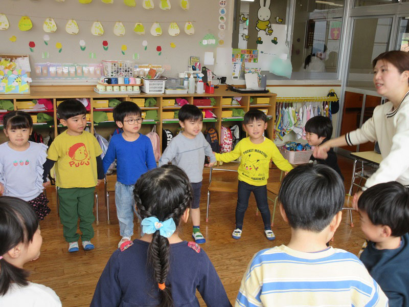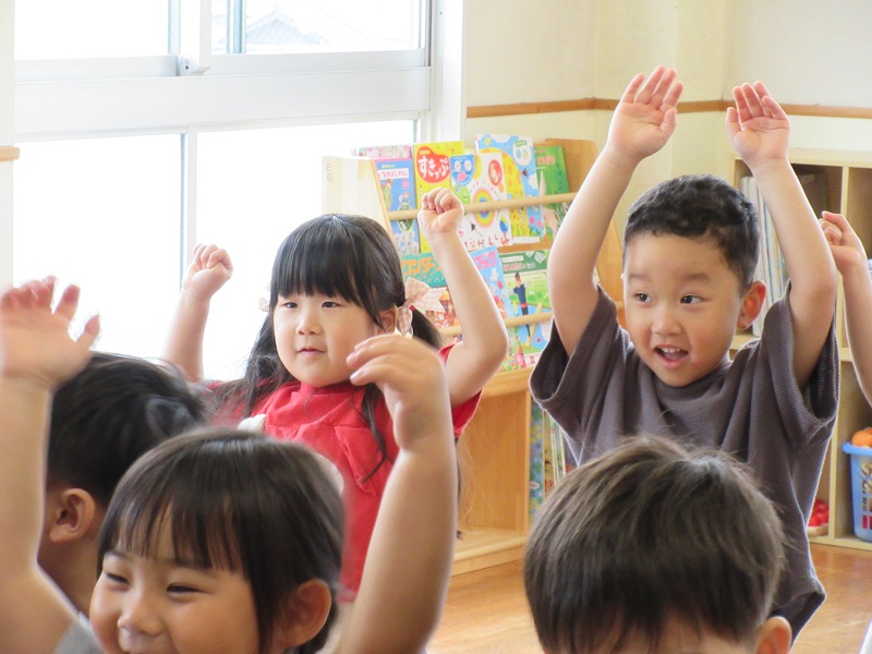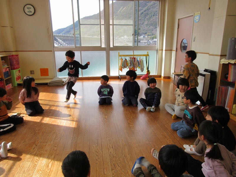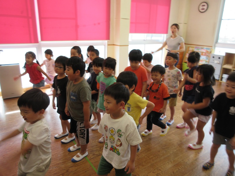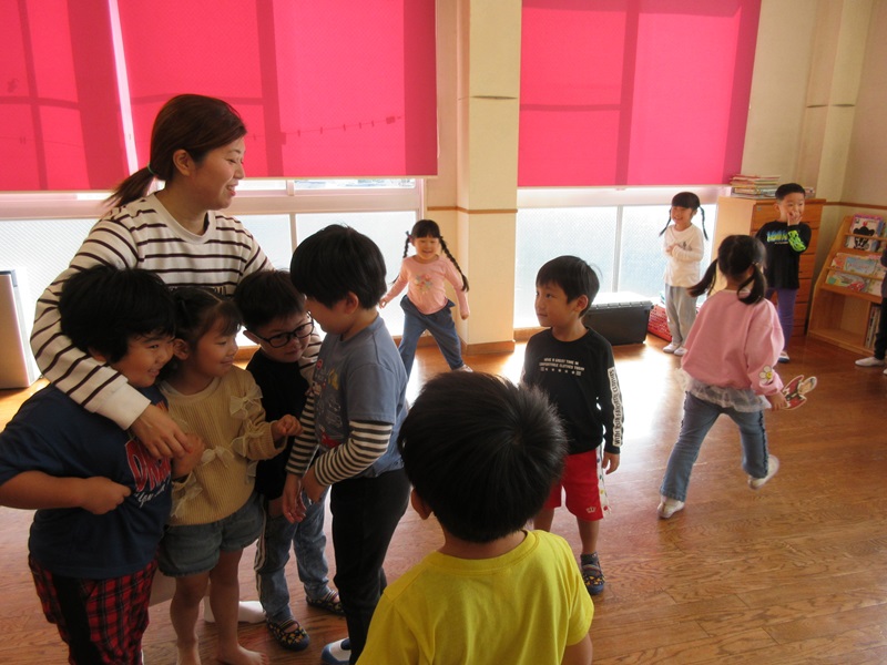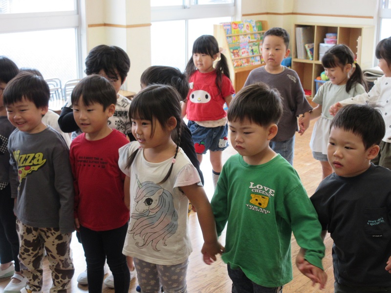 11月ももう終わりに近づき、あと1ヶ月で今年が終わりますね。最近はすっかり冬らしい気候となり、赤く染まった落ち葉がたくさん落ちているのを見かけます。 今日はきりん組さんの保育参観日でしたね!今回は朝の会、ミニゲーム、英語のレッスンの様子を見てもらいました。春の参観日よりも落ち着いて参加する姿を見てもらえたかと思います。 朝の会ではお当番さんに今日の日付、曜日を答えてもらっています!今日は何日かな?何曜日かな?と意識して過ごしています!きりん組さんの得意の歌も聞いてもらいました!大きな声でうたえていましたね(^^)/ ミニゲームでは動きながら先生の声も聞かないといけないのでとっても集中していました!2つの動きを一緒にすることは難しい事ですが、ゲームを通して楽しんで練習していっています!もしも声が聞こえていなかった!という場合でもお友だちが何個取ったか見て、自分も取り、周りを見て行動するという姿も見られましたね☆ 英語のレッスンではまずは英語であいさつ!goodmorning!と元気よく挨拶ができていました!保護者の方のところに行って「My name is ○○!I'm four years old」と自己紹介をしました!恥ずかしがっている子もいましたが、どうでしたか?お父さんやお母さんとのふれあい遊びもとても楽しそうでしたね( *´艸`) 本日は参観日にお越しいただきありがとうございました! |
