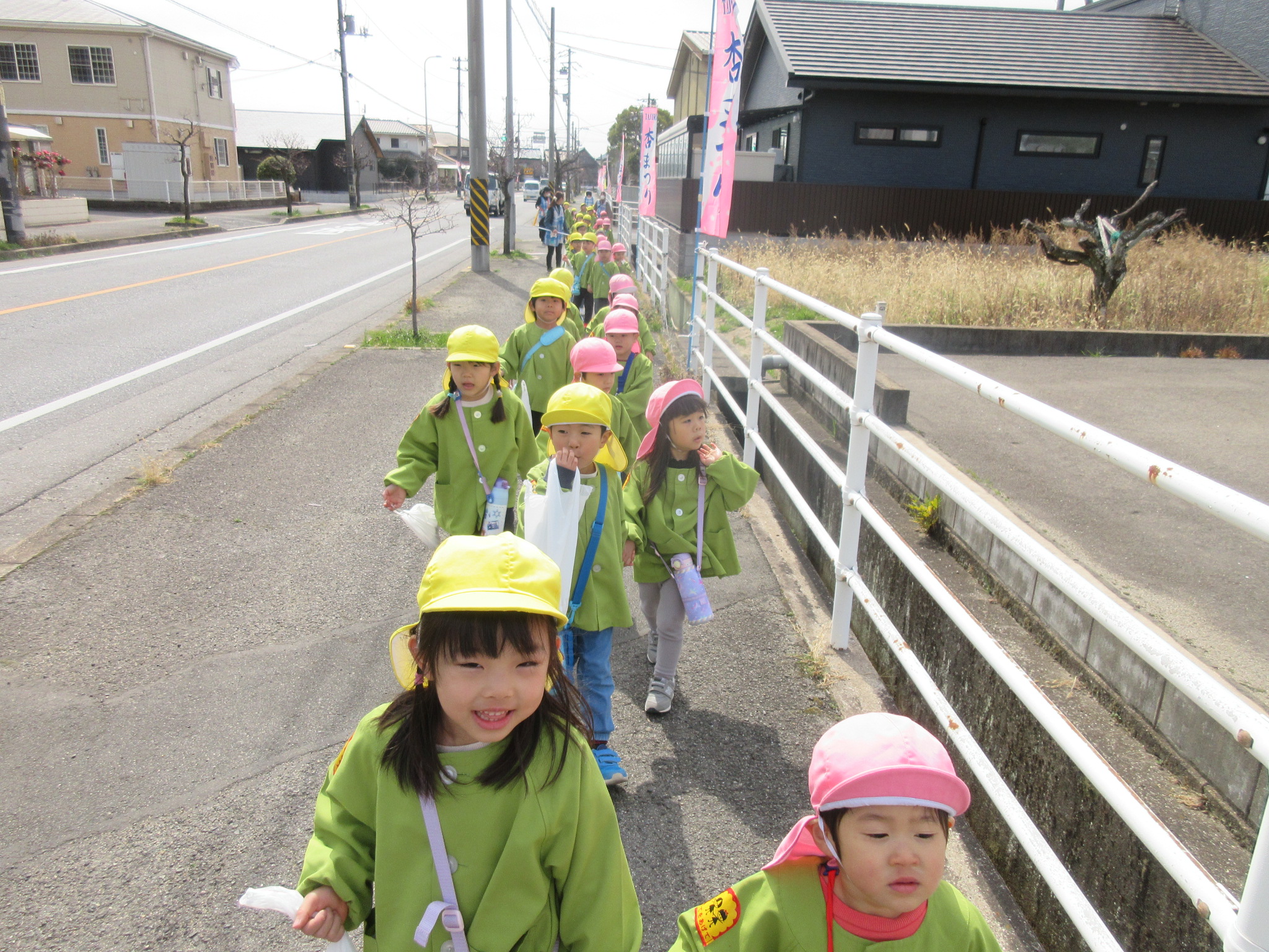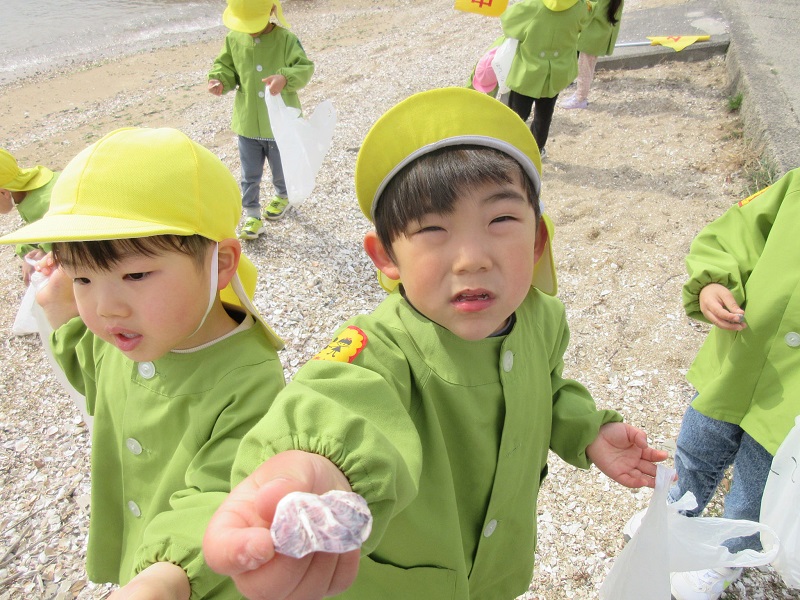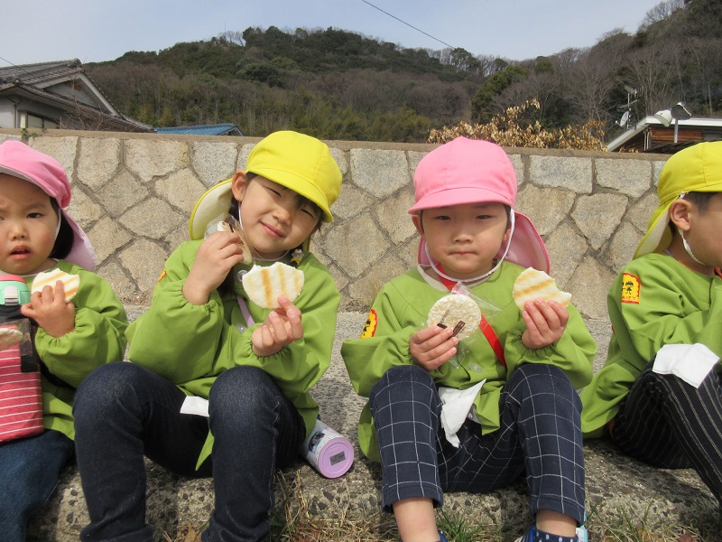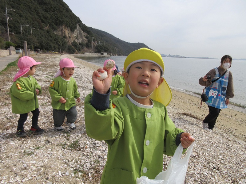 今日は待ちに待ったぱんだ組さんとの思い出散歩に行ってきました!月曜日の交通安全教室で教えて頂いたことを思い出し、ぱんだ組さんをしっかりと守りながら高浜海岸まで歩きました。道中では楽しくお話したり、咲いている梅の花を見て「きれ~☆」と言っていました( *´艸`) 海岸に着いたらおやつタイム♡お友だちとお話しながらお外で食べるおやつはより美味しく感じますね!しっかりと味わって食べていました! 休憩が終わったらいよいよ楽しみにしていた貝殻拾い!小さい貝殻から大きい貝殻までありました!一つ見つけるたびに「せんせ~みて~!」と見せに来てくれました☆拾った貝殻は一人一つ持ってきた袋に入れて持ち帰りました!後日製作で使って余ったものは持って帰るので楽しみにしていてくださいね(^^)/ 帰り道は疲れていましたが、ぱんだ組さんの手を引っ張って無事に園まで帰ってこれました! |