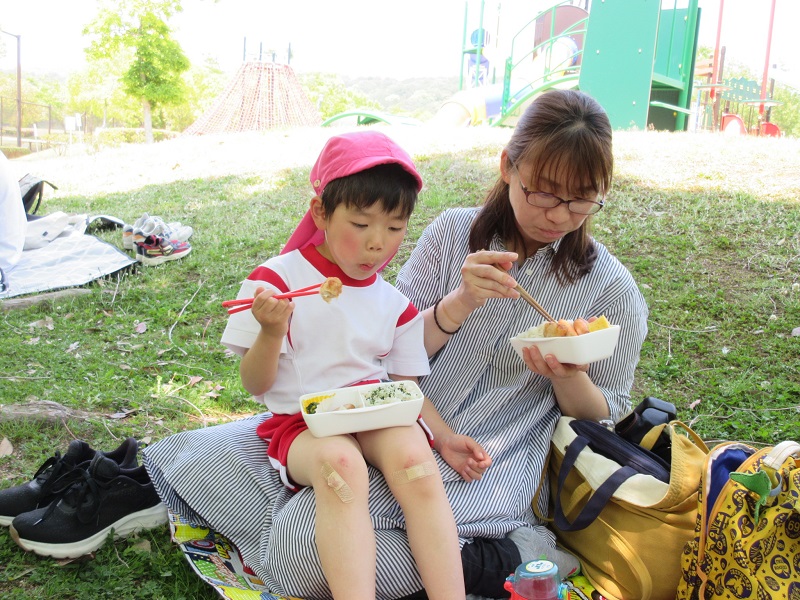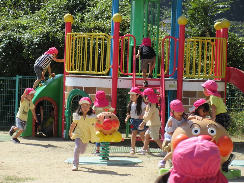 お天気にも恵まれ、暖かい気候の中秋の遠足に行ってきました! まずは七五三のお参りをするため、八幡神社まで行きましたよ!「どうしてお参りをするの?」と子どもたちに聞いてみると「おおきくなれますように!ってお願いするため!」としっかりと覚えていました☆お賽銭を入れて、ぱちぱちと手を合わせてお願いをしました。 お参りの後は坂道でドングリ拾いをしました!「大きいの見つけた!」とたくさんとっていましたよ!上から落ちてきたドングリを頑張って追いかけていたきりん組さんでした!とってきたドングリは製作に使おうと思います(*^-^*) ドングリ拾いが終わったら、ぞう組さんと舟入公園に行ってお弁当を食べました。青空の下で食べるお弁当はとってもおいしいですね(*^-^*)みんなパクパク食べておやつもペロリと完食していました!お友だち同士でお弁当を見せ合い、楽しんでいる姿もありましたよ♡ お弁当の後は自由に遊んで、みんなでボール回しゲームをしました!ぞう組さんときりん組さん、どっちが早くゴールまでボールを運べるか競争しましたよ! 帰り道はみんな疲れてヘトヘトでしたが、ぞう組さんを引っ張ってこども園まで帰ってこれました! お家でお話をたくさん聞いてあげてくださいね(^^)/ |
