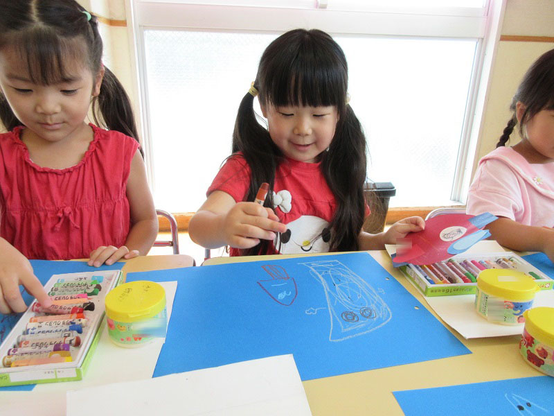 朝と夕方が肌寒い季節になってきましたね。 今日のきりん組さんは紙飛行機づくりをしました! まずは白い紙にクレヨンでお絵描き!何を描こうかなと隣のお友だちと相談しながら描いていました(*^-^*) 絵が描けたら先生の見本を見ながら折っていきました。 最初は半分折るだけなので簡単でしたが、三角に折ったり、斜めに折ったりするところは難しい子もいたので、先生と一緒にしたり、お友だちに教えてもらって完成しました☆ 紙飛行機ができたらお外にレッツゴー! 下の遊具の運動場に着いたら早速飛ばしました! 勢いよく飛ばしてしまうとなかなか遠くまで飛びませんでしたが、少しの力でフワッと飛ばすと遠くまで飛んでいきました! お友だちとどこまで飛ぶか競争して楽しんでいましたよ! お家に持って帰っているのでお家でも飛ばしてみてくださいね(^^)/ |