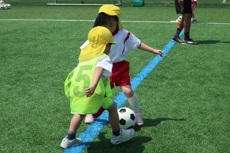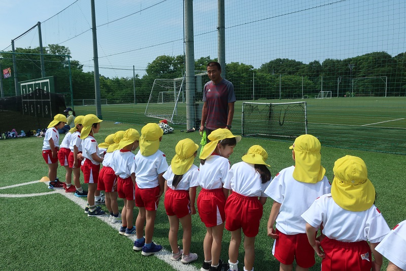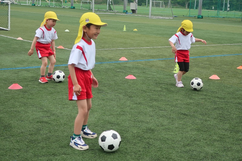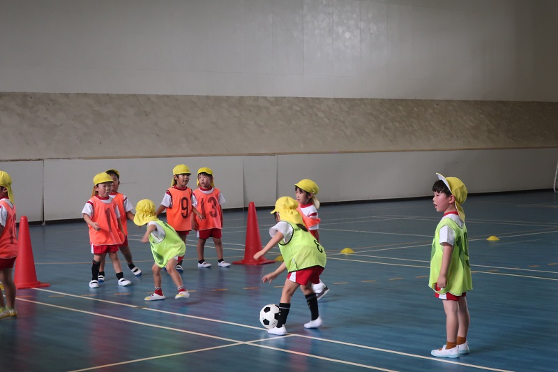 今日は2ヶ月ぶりのサッカー教室がありました! 夏場は気温が高く、外でサッカーをすることが難しいので、7月8月はお休みだったのですが、9月からサッカー教室が再開! みんな心待ちにしていました♪ 久しぶりのサッカー教室に『どんな感じだったけ~』『コーチは誰かな~』と会場に着くまでもウキウキのみんな! 最初の鬼ごっこはみんな『ルールわかる!』『鬼はこっちでえいえいおーしよ!』と白熱した鬼ごっこがから始まりました♪ 捕まったら、仲間が足のトンネルをくぐるまで固まったまま、全員捕まえることが出来たら鬼の勝ち、逃げ切ることが出来たら逃げる人の勝ち。 3回戦やり、鬼チームが2回、逃げるチームが1回勝ちましたよ(*^▽^*) サッカーボールを持って、身体の周りをぐるぐると回したり、ドリブルの練習をした後は、いよいよ試合! 最初は1対1ずつで戦っていきました。 『負けないよ~』と果敢に攻める人やゴール前でキーパーとして守る人、いろいろなお友だちがいて、試合をしてるお友だちにアドバイスをしたり、応援してあげたりと自分なりに色々と考えながら試合をする成長したらいおん組さんの姿が見れました(*´▽`*) 最後はオレンジと黄色に分かれて試合開始! 点を入れたり、入れられたりして、熱い戦いが始まりました(*^▽^*) どちらのチームからも負けないぞという気合が見て取れましたが、 今回は1点差でオレンジチームの勝ち! 負けてしまったチームは、悔しい気持ちを持ちながらもぐっとこらえ、戦ってくれたお友だちに『ありがとうございました』と感謝の気持ちを伝えることができました( *´艸`) 久しぶりのサッカー教室は、この2ヶ月の心の成長が見られるとっても、思い出深いものになりました★ |