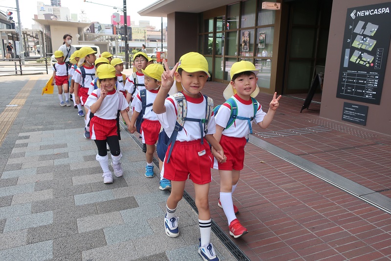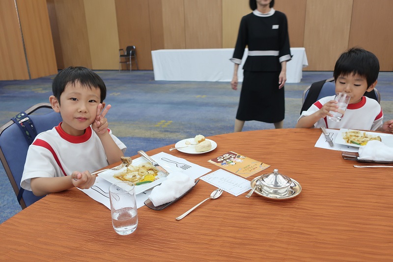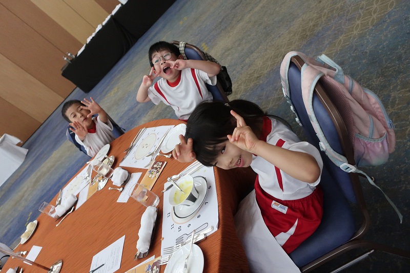 今日はちびっこテーブルマナーに行きました! 「ホテルに行っておいしい料理たべるんだって~!」「楽しみ(*^▽^*)」 と金曜日にお話をしてから、今日まで楽しみにしていたらいおん組さん! 行く前に①バスや会場、園外では静かに行動すること②先生のおはなしをしっかりと聞くこと③できるだけ残さずに食べることをお約束してからいざ出発! バスに乗ると、バス停に止まるたびにのる人が増え・・ 楽しみな気持ちとともに緊張気味な子どもたち! ドキドキしながらもお約束を守って静かに乗ることができました(*^▽^*) バス乗り場から少し歩いてホテルに到着! トイレにいったり水筒のお茶を飲んで心を落ち着けて・・ 始まるまでもドキドキのらいおん組さん! ホテルの方からナイフやフォークの使い方、ナプキンの使い方や食事中のマナーをその都度教えてもらいながら、一生懸命食べました! 「ナイフ難しい~」「どうやって使うの~?」と難しいながらも一生懸命頑張ってマナーを学ぼうとする姿がとってもかっこよかったですよ(*´▽`*) 料理の量もいつもより多かったのですが、無理のないように頑張って食べました! 美味しいハンバーグに甘いプリン♪ おいしいものがたっくさんたべた後は、最後にシェフやホテルの方と一緒に写真を撮り、しっかりとお礼を言って帰りました(*^▽^*) 帰りのバスでは、緊張がとけ、うとうとならいおん組さん♪ だんだんと終わっていく園行事に寂しい気持ちもありますが、今日でまた一つ楽しい思い出がふえました!今日の出来事、お家で沢山お話してね(✿◡‿◡) |