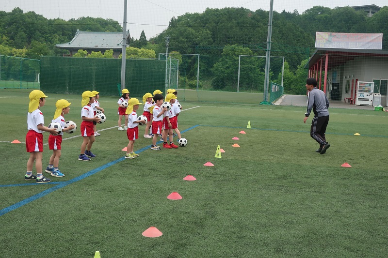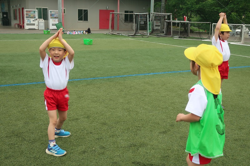 今日は、夏前最後のサッカー教室がありました! 夏の暑い時期は、外でサッカーをすることが厳しいので、当分の間はお休みになります。。 今日のサッカー教室は最初に動物鬼ごっこをしました! ゼッケンを着た人は鬼!鬼に使った人はうさぎやぱんだなどの動物に変身してしまうという鬼ごっこです♪ 捕まらないように機敏に動きながら、捕まったときは動物のポーズをして『助けて~!つかまっちゃったよ~』と仲間に助けを求める姿が可愛かったです(*^▽^*) ウォーミングアップをした後は、ボールを身体のまわりをクルクル回したり、足の間を八の字に回したり、足でボールを持って上あげたり。。 色々な動きをしてボールと仲良くなりました! そのあとはいよいよ試合の時間! キーパーは交代しながら二人ずつ!手は使わずに足だけで! ルールを確認して、よーいスタート(*^^*) 一生懸命ボールを追いかけ、キーパーの人はゴールさせないように頑張りました! キーパーが子どもたちの中で大人気ですが、変わって~と交代でもめているうちに、相手のチームにゴールされたり。。 色々なことがありましたが、両チームとも最後まで頑張りました! 気温が高かったので、水分補給をこまめにとったり、保冷剤で身体を冷やし、熱中症対策をしながら頑張りました(*^▽^*) |