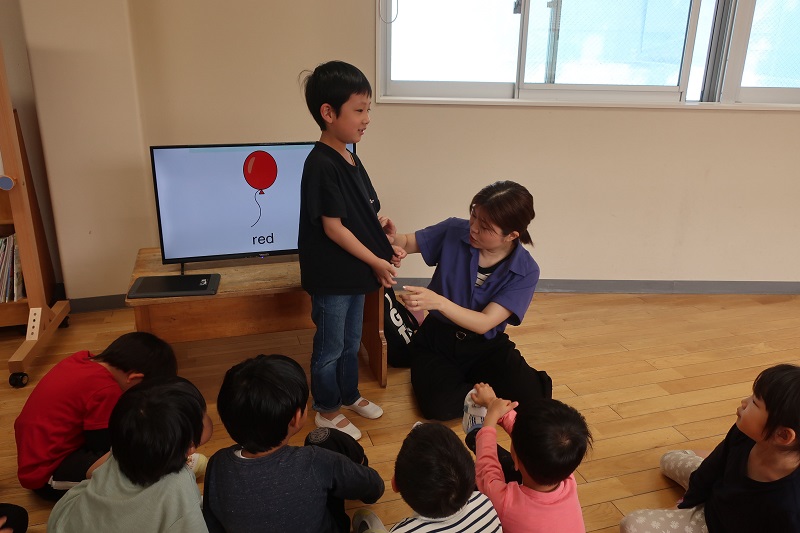 今日はECCがありました! 先月からECCの日を楽しみにしていたらいおん組さん♪ 今日は、色の英語を教えてもらい、色を使ったゲームをして遊びました(*´▽`*) 赤はRed、青はBlue、黄色はYellow、白はWhite、黒はBlack、色の英語を勉強した後に、自分の服や自分の持ち物からお題の色を見つけるゲームをしました! 見つけた人は手を挙げて、みんなの前で発表♪ 少し恥ずかしがりながらも、大きな声で英語で色を発表できました! 今回のECCもあっという間! 次はいつかな~とすでに次回を楽しみにしているらいおん組さんです(*^^*) |