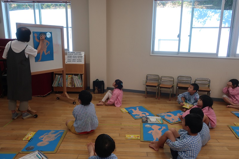 今日はECCがありました! 雨が降り『外あそびいけない~』と残念がっていたらいおん組さんでしたが、 ECCが始まると楽しくて笑顔が止まらないみんなでした! 今日は、『マイネームイズ○○』と先生の真似をして自己紹介の練習をしてみました(*^^*) 前に出てしてみたいお友だちは、前に出て自分の名前を英語で紹介してみました!! そのあとは、英語の歌に合わせて体操をしたり、アルファベットを身体で表現しながら発音を練習したりしてみました(*´▽`*) 最後は、イラストに合わせて、『お母さんはどういってるかな~』『この子はどんなことを言っているかな~』ろ英語の意味と日本語の意味を照らし合わせて、英語を学びました! 今回のECCもあっという間!! 最後は先生に『センキュー!』と元気よくお礼を言いましたよ♪ |