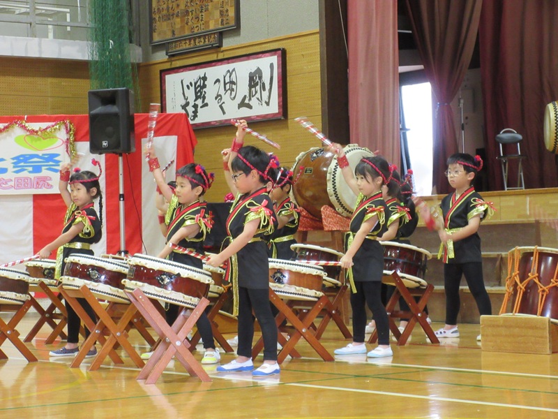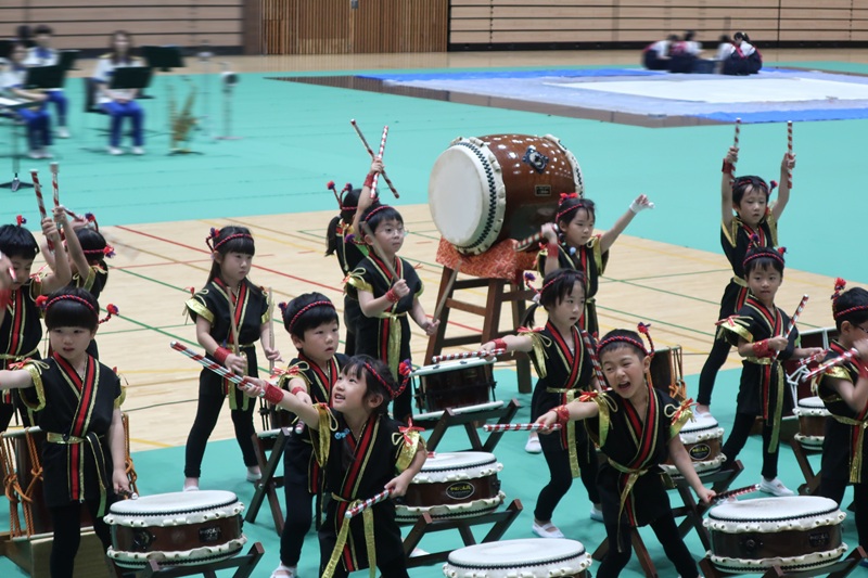 11月2日(日)に田尻町文化祭があり、らいおん組さんが和太鼓で出演しました!(^^)! 前日の土曜日からきりん組らいおん組の絵画を飾らせていただき、日曜日には太鼓の出演と盛りだくさんな週末でした! 屋台や作品の展示など盛り上がる中、らいおん組さんはプログラムの一番初めの出演!! 運動会や式典等本番を重ねてきたらいおんさん。 それでもやっぱり本番前は胸がドキドキ・・♡ カッコイイ衣装を着て、頭飾りをつけて、準備は万端!! 保護者の方や地域の皆さんに見守られながら、練習以上の演技ができました(*^-^*) 腕を伸ばし、声を出し、音を聴き、みんなで合わせて、かっこいい『魅せる太鼓』が少しずつできるようになってきました。 次の本番は発表会!今回の文化祭での経験を活かし、さらにパワーアップしたらいおん組さんの姿をお楽しみに☆彡 今回もとってもかっこよかったよ!(^^)! |