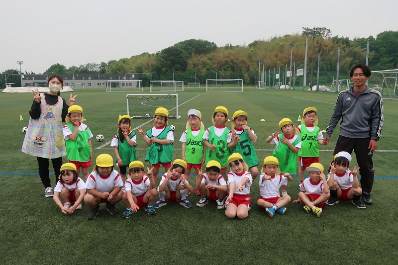 今日は今月初めてのサッカー教室がありました! 前回のサッカーから今日が来るのをいまかいまかと待っていたらいおん組さん♪ 今日は最初にバナナ鬼をして身体を動かしました! みんなが知っているバナナ鬼ではなくて、鬼にタッチされてバナナになった人は仲間から、手をおろしてもらい、皮をむいてもらわないといけないというルールでした!いつもとは違うルールの鬼ごっこにワクワクが止まらないみんな(*´▽`*) 次にサッカーボールと仲良くなろうということで、ボールを上に高く上げキャッチしてみたり、上に投げている間に何回手を叩けるかしてみたり、足の間をボールをクルクル動かしたりして楽しみました(*^^*) みんなが一際楽しそうにしていたのが、4つの四角のを行き来し、コーチと同じマスに行ってしまった人はアウト!というゲームです! コーチと同じマスに入らないように考えながら頑張りましたよ(*´▽`*) 最後に赤チーム、緑チームにわかれて、試合スタート! 赤チームはゴールを入れると先生にタッチ!緑チームはコーチにタッチ! 今日は一点差で赤チームの勝利!! 負けたチームも勝ったチームも最後までよく頑張りました(*^^*) 最後は一緒に試合をしてくれたお友だちに挨拶♪ 次回のサッカーも楽しみだね(❁´◡`❁) |