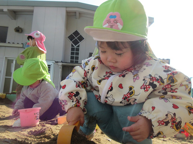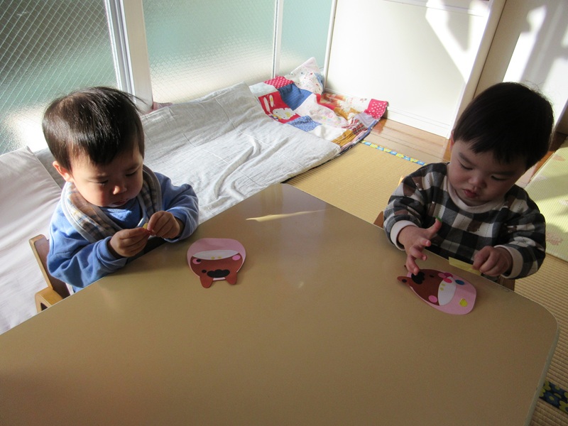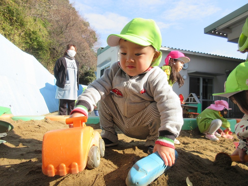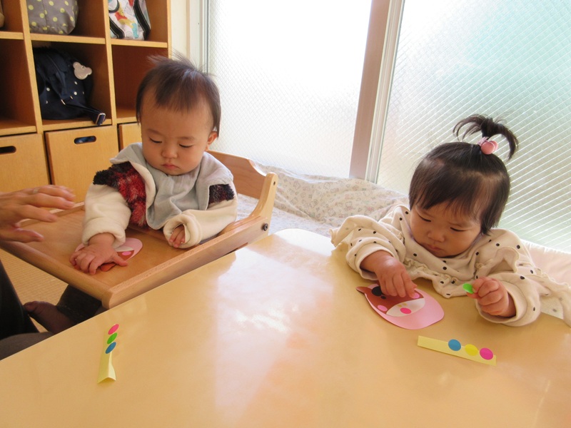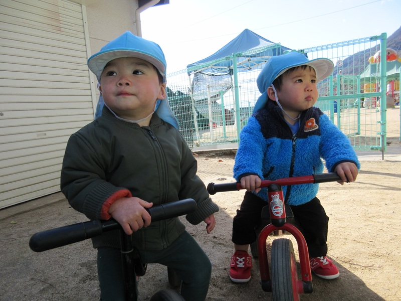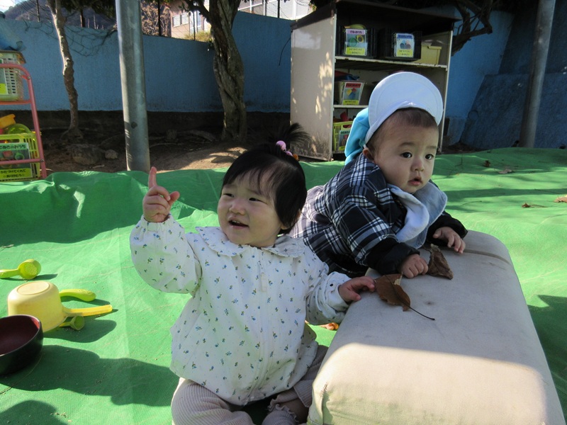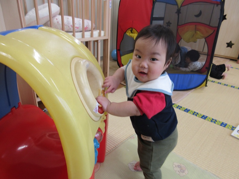 初めての集団生活でお家の方から離れて不安や心配ごともあったかと思います。子どもたちも少しずつ園になれていき、今ではお部屋をハイハイや歩いたり、走ったりしてたくさん動き、お部屋にある引き出しを開けて出し入れをしたりして探索して元気いっぱいなひよこ組さんです(^^) 今年最後のホームページは、今週の活動を簡単にご紹介します! こどもたちが大すきなトンネル遊び!くぐる長さも短くてなんどもくぐってみたり、友だちを顔をみあわせて「いない、いないばあ」をすると喜んでいます!つかまり立ちをして膝のまげのばしもすることがあります。 1月壁面製作「だるま」 来年の干支がうまということで馬の顔を丸シールでつけました。手のひらにくっついて中々取れず試行錯誤し、貼れるとホットして嬉しそうでした。 最後は今日は天気もよく戸外遊び! 三輪車にのり、足をけりながら前後左右に動いてみたり、先生たちに優しく押してもらい進んでみたりしました。とびばこで膝立ちや落ち葉もあり落ち葉のシャワー等をして遊びました。 今年もたいへんお世話になりました。良いお年をお迎えください。来年もよろしくお願いします!休み明けに会えるのを楽しみにしています♪ |