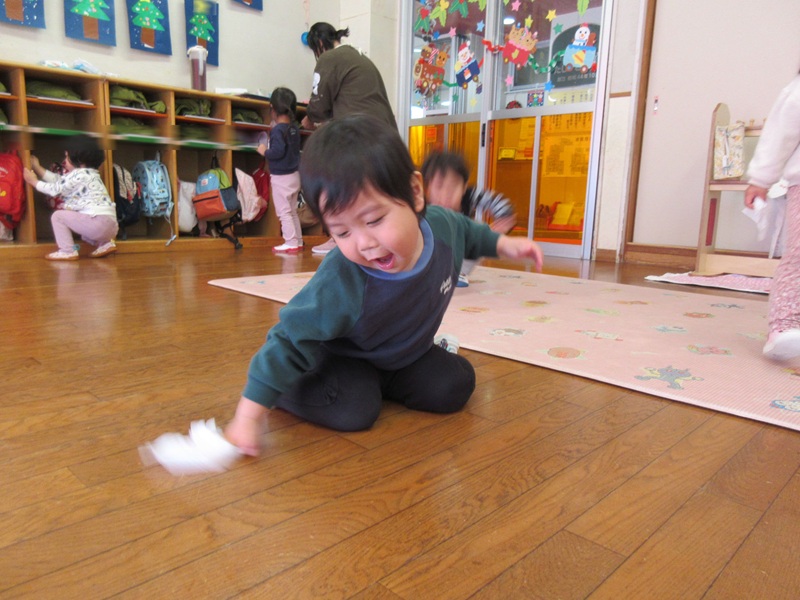 今年もお世話になりました。 出来るようになった事が増えたりす組さん!自分で靴を履いたり、エプロンを片付けたり…(*^^) 片づけるよ~と声をかけるとおもちゃを集めて持ってきてくれます!ここにもあるよ、誰か来てくれないかな??と言うとみんな集まってきます(笑) 来年は、うがいを始めたり、朝のタオルの準備も子どもたちでやって行こうと思います! 1月には発表会があります!大きな声で返事をしたり、歌ったり踊ったりと楽しく練習に参加してくれていますよ!お楽しみに~♡ 来年もよろしくお願い致します(*^^)v |