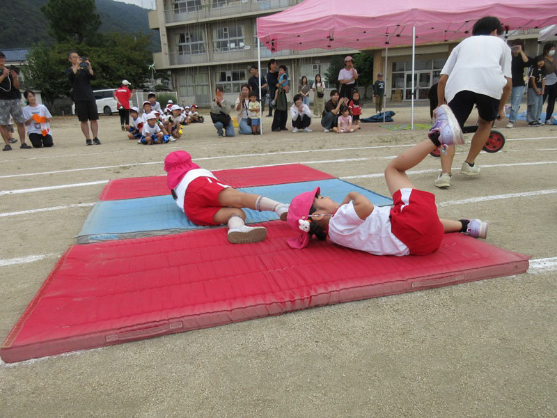 待ちに待った第57回運動会! 運動会に向けてどのクラスも取り組みを頑張った数か月。 当日の朝はみんな元気に集合してくれて 大好きなお家の方に向かってかけっこしたぱんだ組さん。 大きなバルーンを持って力いっぱい演技したきりん組さん。 出番が多くたくさんの取り組みをしたらいおん組さん。 早朝から現地集合にご協力いただき、励ましの拍手や応援、 こどもたちの成長をたくさん見れ、 さあ、次はりす組、ひよこ組のミニ運動会ですねー! |