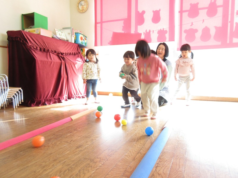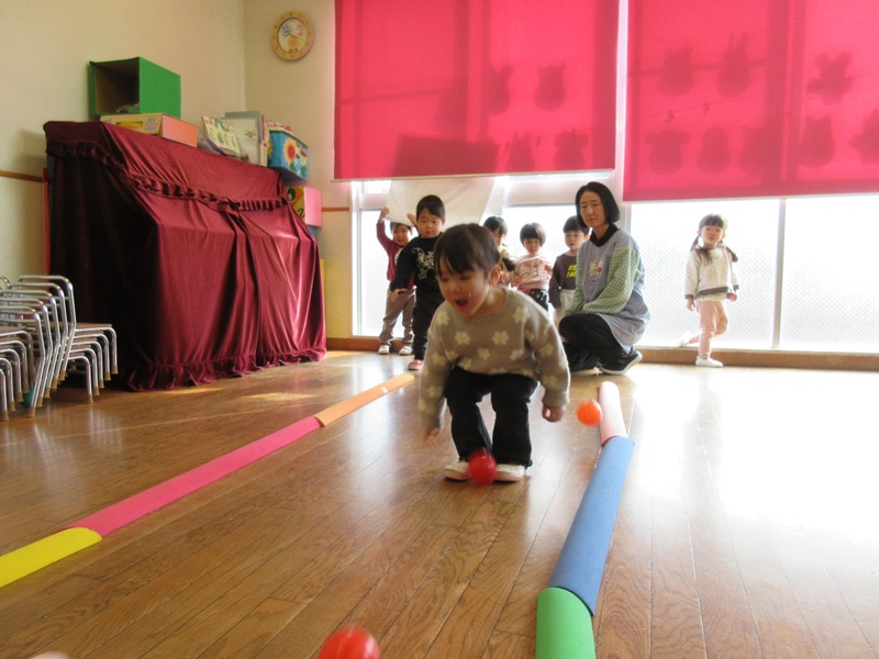 今日のぱんだ組さんの活動を紹介します! まずは発表会の練習から! 大きな声でお名前やセリフを言っています(^^)/ 服を着たり、帽子をかぶったりと普段していることを発表会で披露しますよ! 保護者の方にかっこいい姿を見てもらおうと日々の練習に一生懸命取り組んでいます。 発表会の練習が終わった後はお部屋に戻ってミニゲームをしました。 枠の中に一人ずつ入って、転がってきたボールを避けるゲームです! ジャンプをしたり、左右によけたりと当たらないようにしっかりボールを見ていました。 ゲームの後はお外に行ってたくさん身体を動かしました! 'こどもは風の子'という言葉の通り、寒くてもへっちゃらなぱんだ組さんでした♪ |