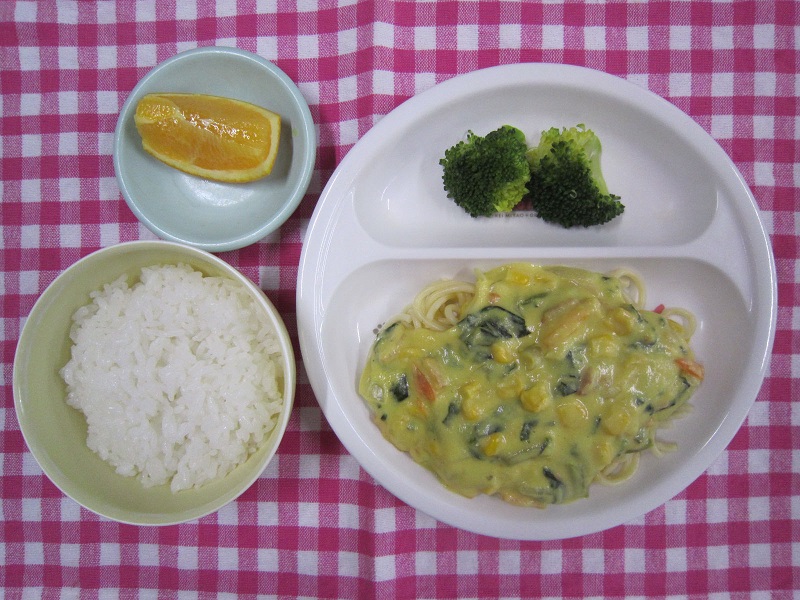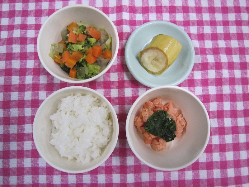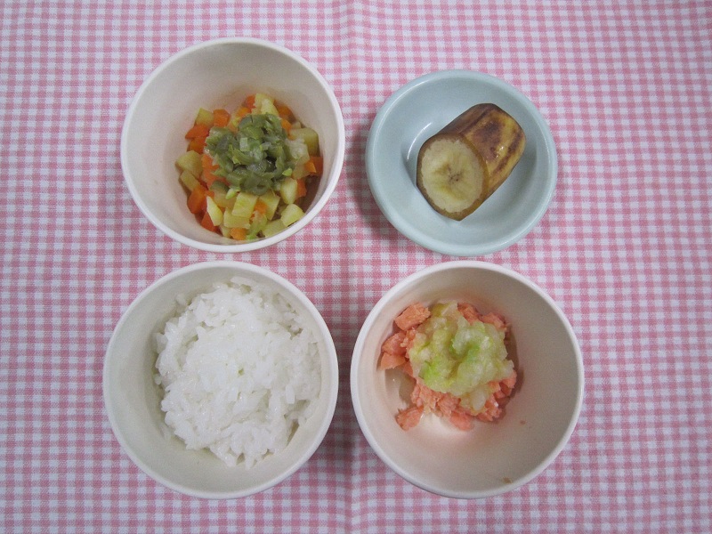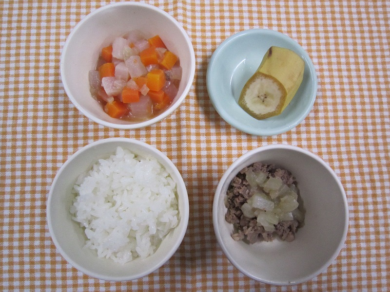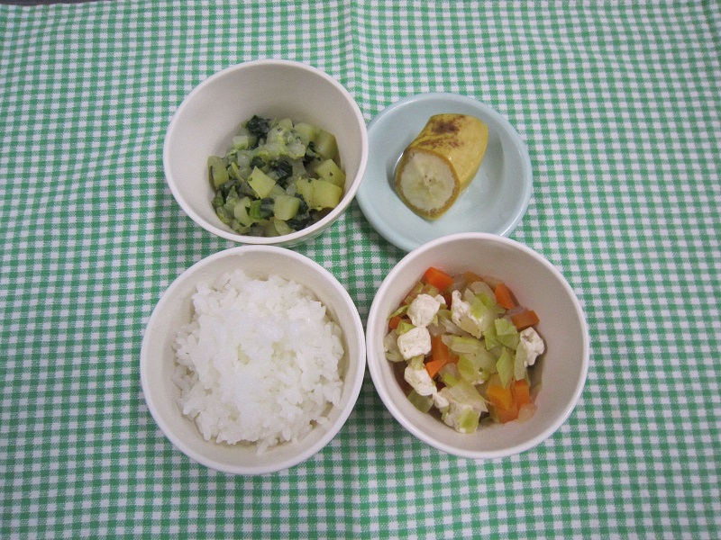 | 1月生まれのみなさん、お誕生日おめでとうございます♩ 寒さの厳しい日が続いていますが、お外で遊ぶ子どもたちの元気の良い、そしてとっても楽しそうな声が、給食室にもよく聞こえてきます(^^)人参やれんこんなどの根菜類には体を温める効果があるので、シチューやスープに入れて、冷えた体を温めてあげましょう‼ ~お楽しみ給食~ 人参ごはん 鶏肉の照焼き ほっこり白和え ブロッコリーの浸し バナナ ~離乳食(後期)~ 鶏肉と野菜の柔らか煮 バナナ ~手作りおやつ~ ピザトースト ~延長保育のごはん~ わかめおにぎり バナナ |