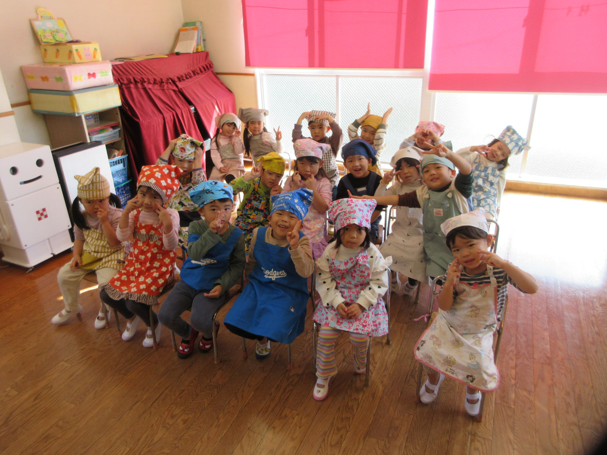 今日は、5月生まれのお友だちのお誕生日会と子どもの日の行事がありました! それぞれのクラスで製作したかっこいい兜をかぶって集合~!! 個性あふれるかわいいカッコイイ兜たちが集まりました(*^^*) こどもの日に向けてこいのぼりも製作したので、誕生日会の前にクラスごとに兜とこいのぼりの紹介をしてもらいました!! ぱんだ組、りす組は先生に説明してもらい、らいおん組、きりん組、ぞう組は前に出て子どもたちにどんな製作をしたのか発表してもらいました(*^^*) 緊張しながらも一生懸命に説明してくれましたよ! 絵の具を使ったり、クレヨンを使ったり、ハサミで切ってみたり、、 色々な製作方法を使ってかわいい兜やこいのぼりが完成したんだね! 今回の5月生まれのお友だちは6人! キラキラの冠をかぶって・・ 名前や何歳になったか、好きな食べ物や大きくなったらなりたいものを聞きました(*^^*) みんなで誕生日の歌を歌ってお祝いしたり、大きな声で『こいのぼり』『おつかいありさん』を歌ったりして、楽しみました♪ 先生からの出し物はパネルシアター二つとみんなで楽しめる体操!! 『こいのぼりのおさんぽ』と『お誕生日会にきたのはだあれ?』というパネルシアターで、みんな夢中になって見入っていましたよ!(*´▽`*) 最後に『じゃんぐるぐるぐる』という体操でジャングルの中のいろいろな出来事をくぐり抜けて、、 5月のお誕生日会はおしまいです(*^^*) 5月生まれのお友だち!お誕生日おめでとう♪ |