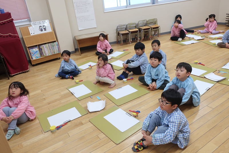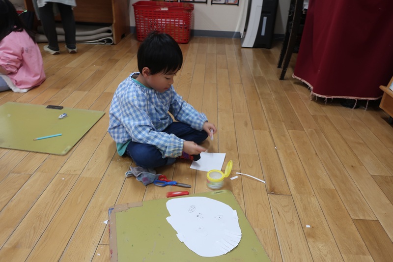 今回は、今日行った絵画教室の様子と最近のらいおん組さんの戸外あそびの様子をお届けします♬ ❀絵画教室❀ 今回の絵画は版画! 版画の土台を、画用紙を使って製作しました♬ ①大きく顔を描き切る取る。 ②目、鼻、眉毛、口、髪のパーツを切る。 ③すべて張り付ける。 最後には絵の具をつけ、刷るため、でこぼこになっていないと形がでないんだよと教えてもらい、細かいパーツも一生懸命切りましたよ(*^^*) 最後の方には疲れた~と言いながらも、達成感にあふれるらいおん組さんでした! ーーーーーーーーーーーーーーーーーーーーーーーーーーーー ❀最近のらいおん組さん❀ やっと暑さも落ち着き、寒い季節がやってきました(*^^*) 朝は気温が低くても、日中は陽が照り、気温高いことが多く、絶好の外あそび日和! ということで、最近のらいおん組さんは外あそびを楽しんでいます! みんなで集まって鬼を決め、子どもたちだけで鬼ごっこをしたり、ごっこあそびをしたりとお友だちと一緒に外で身体を動かすことを楽しんでいます(^^)/ 運動会の園からのプレゼントの縄跳びは外に出るときに持ち出して、自由に跳べるようにしています。 前回りを練習したり、後ろ跳びを練習したり、上手なお友だちに教えてもらったりして楽しんでいますよ( *´艸`) これから寒くなりますが、この調子で外あそびも楽しんで元気いっぱいに過ごしてほしいなと思います♬ |