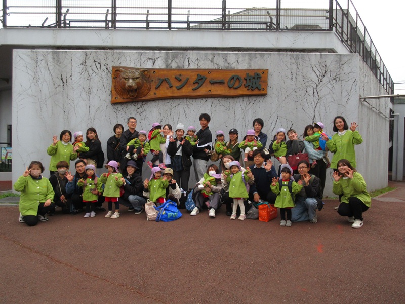 今日は待ちに待った親子遠足の日! 事前に作ったてるてる坊主のおかげでいいお天気でした♪ ずっと前から楽しみにしていたぱんだ組さんですが、初めての大きなバスということで、少しドキドキしている様子でしたね。 バスの中では自己紹介やシルエットクイズをしました! 自分の名前や好きな動物、今日の朝ごはんをしっかり答えていましたよ! 動物シルエットクイズでは少し難しいかなとおもっていたものでもすぐに答えが出てきたのでビックリでした( ゚Д゚) 動物園に到着したらぞうさんの前の広場で少しレクリエーション! 親子ペンギンになってよちよち歩いてレースをしましたよ! 保護者の方の足の上に上手に乗って歩いていました☆ レクリエーションのあとは園内を自由に探索の時間です。 ライオンが近くまで来てくれて、大迫力のらいおんにみんな大興奮でした! 普段は見れない動物さんがたくさんいて、じっくり見て回っていたみんなでしたね。 自由行動の後は待ちに待ったお弁当♪ 子どもたちがリクエストした食材がいっぱい入っており、愛情たっぷりで美味しそうでした! お外でみんなで食べるお弁当はさらに美味しく感じますね! お弁当の後はまたまた自由行動! 動物を見たり、お友だちと遊具で遊んだりと楽しんでいましたね♪ しっかり遊んで疲れたようで、帰りのバスは気持ち良さそうに寝ていました! 親子遠足に参加していただき、ありがとうございました! |