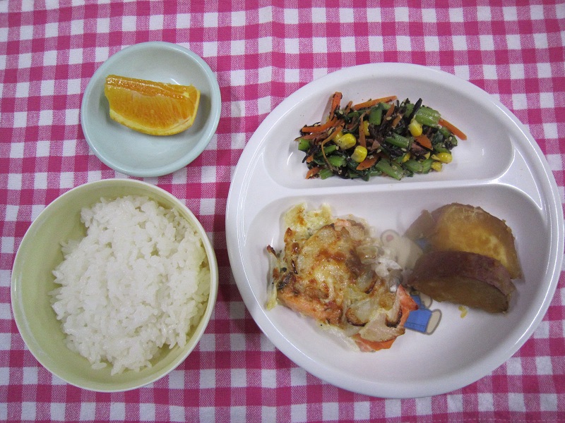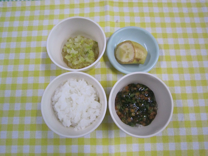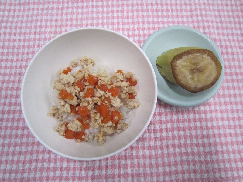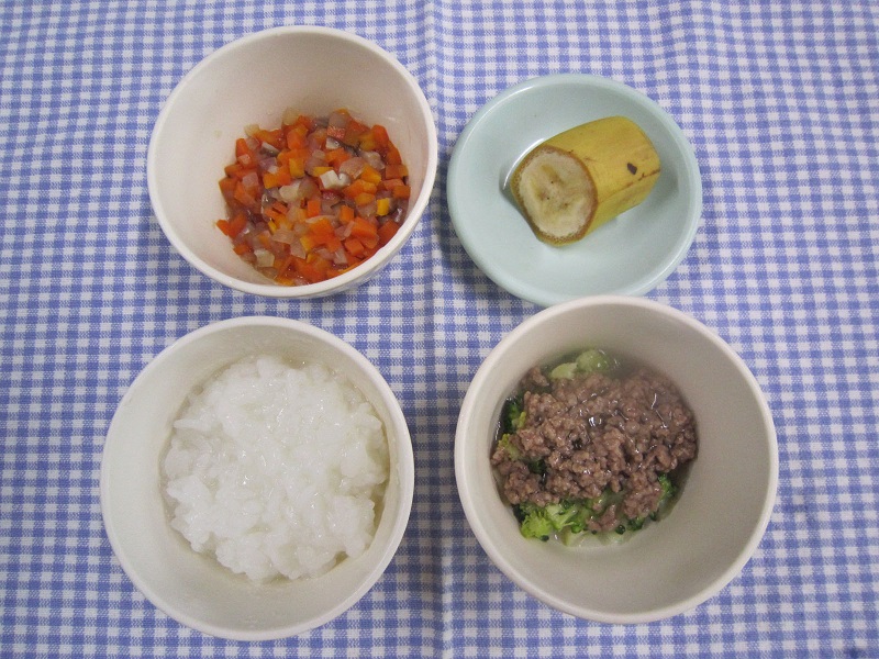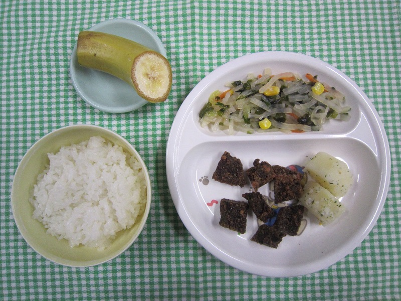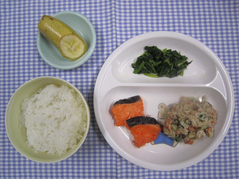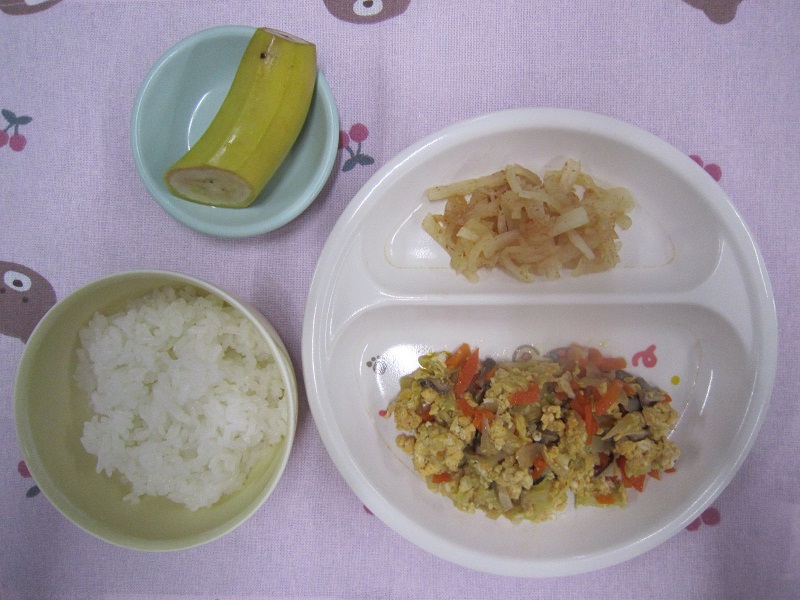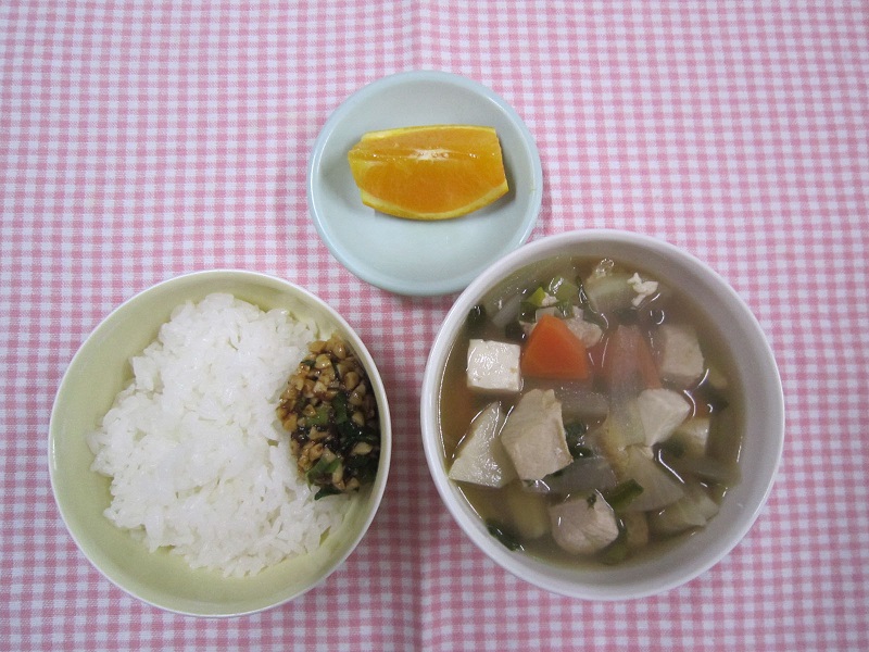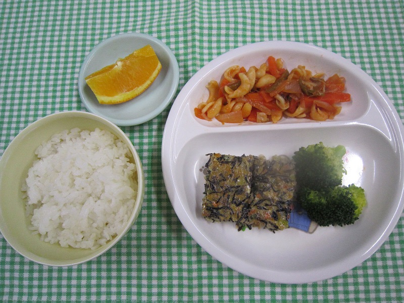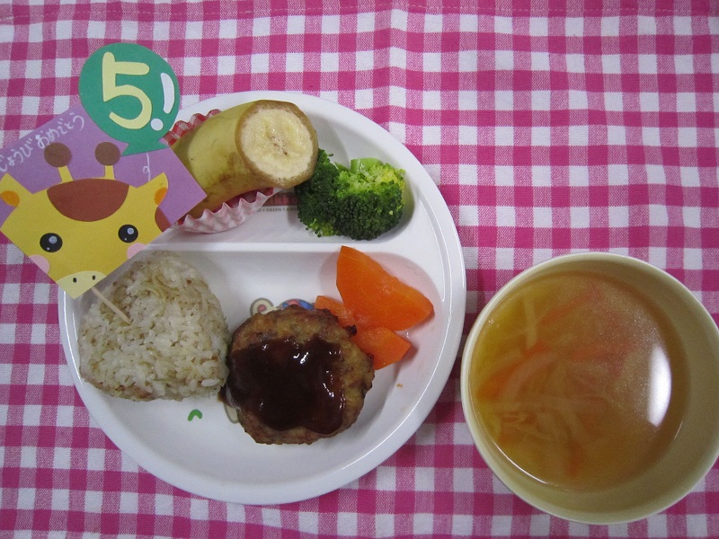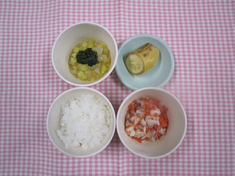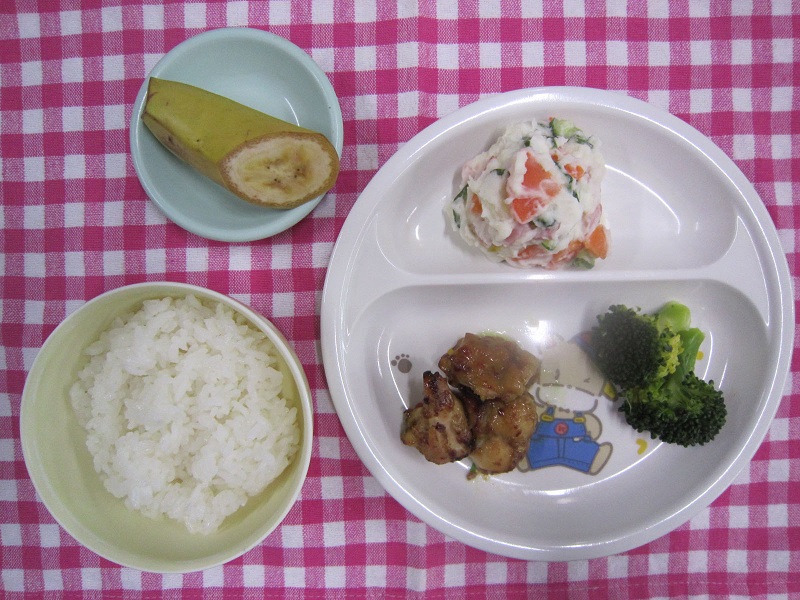| 1月生まれのみなさん、お誕生日おめでとうございます♩ 寒さの厳しい日が続いていますが、お外で遊ぶ子どもたちの元気の良い、そしてとっても楽しそうな声が、給食室にもよく聞こえてきます(^^)人参やれんこんなどの根菜類には体を温める効果があるので、シチューやスープに入れて、冷えた体を温めてあげましょう‼ ~お楽しみ給食~ 人参ごはん 鶏肉の照焼き ほっこり白和え ブロッコリーの浸し バナナ ~離乳食(後期)~ 鶏肉と野菜の柔らか煮 バナナ ~手作りおやつ~ ピザトースト ~延長保育のごはん~ わかめおにぎり バナナ |