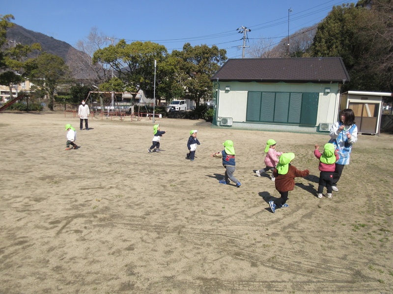 今日は、参観日でした♪ 3月3日ひなまつりの日が近いということでひな飾りを作りました! 最初に朝の会をして朝のうたやひなまつりのうた、お返事をしましたね!恥ずかしい~と顔を隠す子もいましたね(笑) ひな飾りでは、コーヒーフィルターに水性ペンでお絵描きをしました。手や新聞紙に描いている子もいましたね…(笑) おひな様、お内裏様の目と口も貼る位置を理解していて子どもたちではがし貼ることができました!とても上手になっていてびっくりです☆ ひも通しも長い間集中してとてもかわいいひな飾りが完成しました♪体と体の飾りを貼ったら完成です!お楽しみに~♡ 最後は、ふれあい遊び「おおかみさん」で一緒に歩いておおかみさんから無事逃げることができました! 自分でやろうとする気もちが芽生え、支度や片付け、うがいなど頑張っています!ひも通しを集中してできるようになったり、自分の物がどれか分かるようになったり、お友達にも興味をもちはじめ一緒に遊んだりとたくさんのことができるようになり成長しています。 残り一か月よろしくお願い致します。本日は、お忙しい中お越しくださりありがとうございました。 |
