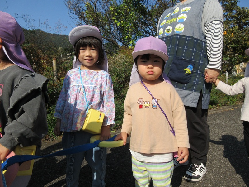 今日はとってもいいお天気だったのでお散歩に行ってきました! 自分たちでつくったお散歩バッグを持ってしゅっぱ~つ! 行きの道中では「お水がキラキラしてる!」「うわ~トラックだ~!」 「ちょうちょがいるね~」と楽しそうにお友だちとお話していましたよ♪ 舟入公園についたらちょっと休憩!お茶を飲んだりおやつを食べて一息つきました。 おやつを食べて元気いっぱいになったら、今回のお散歩のメインイベント! どんぐりを拾いに八幡神社の下の坂道まで頑張りました! 坂道にどんぐりが落ちていて、「あ!どんぐり!」と大興奮でした! お散歩バッグに拾ったどんぐりや木の実をたくさん集めて、お友だちと見せ合いっこをしていましたよ! あまり拾えていないお友だちがいると見つけてきてあげて渡してあげていた優しいぱんだ組さんでした( *´艸`) 帰り道は疲れている様子でしたが、帰ったら美味しい給食が待っていることを伝えると元気になりました☆ みんなの大好きな消防車にも出会えて、消防士さんに手を振ってもらえてうれしそうでした! 次のお散歩が楽しみですね! |