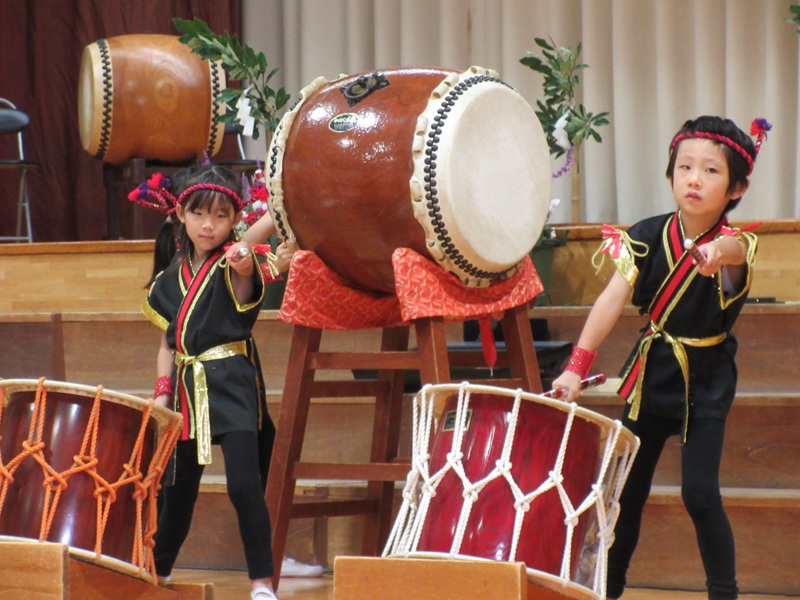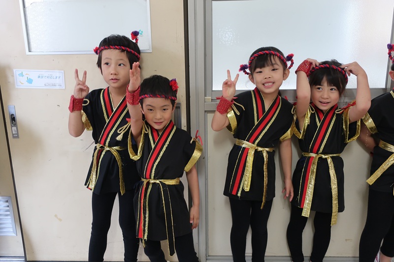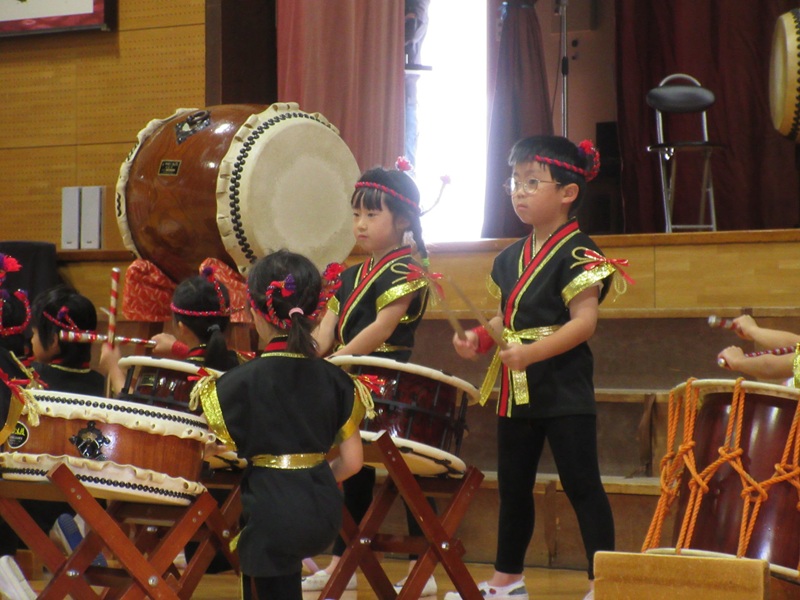 11月2日(日)に田尻町文化祭があり、らいおん組さんが和太鼓で出演しました!(^^)! 前日の土曜日からきりん組らいおん組の絵画を飾らせていただき、日曜日には太鼓の出演と盛りだくさんな週末でした! 屋台や作品の展示など盛り上がる中、らいおん組さんはプログラムの一番初めの出演!! 運動会や式典等本番を重ねてきたらいおんさん。 それでもやっぱり本番前は胸がドキドキ・・♡ カッコイイ衣装を着て、頭飾りをつけて、準備は万端!! 保護者の方や地域の皆さんに見守られながら、練習以上の演技ができました(*^-^*) 腕を伸ばし、声を出し、音を聴き、みんなで合わせて、かっこいい『魅せる太鼓』が少しずつできるようになってきました。 次の本番は発表会!今回の文化祭での経験を活かし、さらにパワーアップしたらいおん組さんの姿をお楽しみに☆彡 今回もとってもかっこよかったよ!(^^)! |
