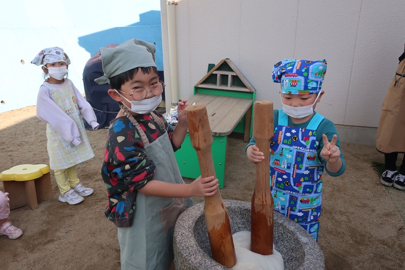 前日から「あしたはおもちつきだよね!」「たのしみ~♬」と待ちきれない様子の子どもたち♡