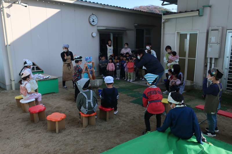 他のクラスのお友だちもらいおん組さんのおもちつきをたくさん見に来てくれました(#^^#)